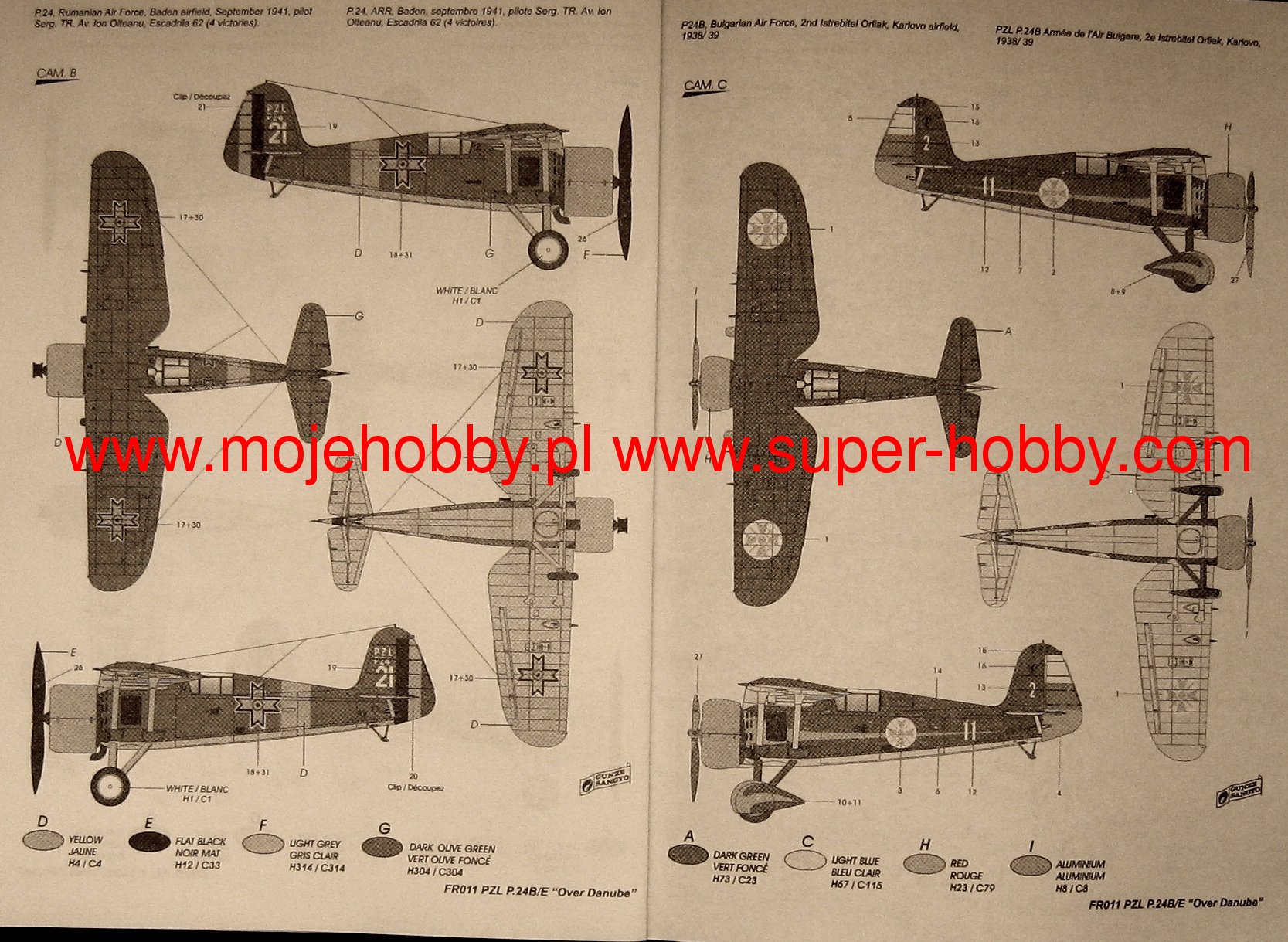 The PZL P.24 is a Polish, one-man interceptor with Puławski wings, a metal structure with a classic tail and a fixed landing gear. The PZL P-24 aircraft was built under the direction of Wsiewołod Jakimiuk and was a modification of the PZP P-11 fighter adapted to the installation of an engine with a power of approx. 1000 HP. The first prototype with a Gnome engine - the Rhone 14 Kds was flown between May 24 and 25, 1933 by Bolesław Orliński. In 1936, the first order was received from Turkey. Soon the P-24s were also purchased by Bulgaria, Greece and Romania, which also acquired a license. In 1937, a new version of the P-24 was developed. The new plane had an 860 HP GR 14N-07 engine, the fuel system and the cooling system were changed. A new engine cover was used and the cabin was armored. Greece was the first to buy the new planes in the number of 25 P-24Fs, armed with 2 cannons and 2 km, and 6 P.24Gs, armed with 4 kms. Poland in 1939. The only surviving P-24 plane is now in the Turkish aviation museum. Technical data (version P.24G): length: 7.81 m, wingspan: 10.68 m, height: 2.7 m, maximum speed: 430 km / h, rate of climb: 11.1 m / s, maximum ceiling: 10,500 m, range maximum: 700km, weapons: fixed - 4 Colt-Browning machine guns, suspended - up to 40 kg of bombs.