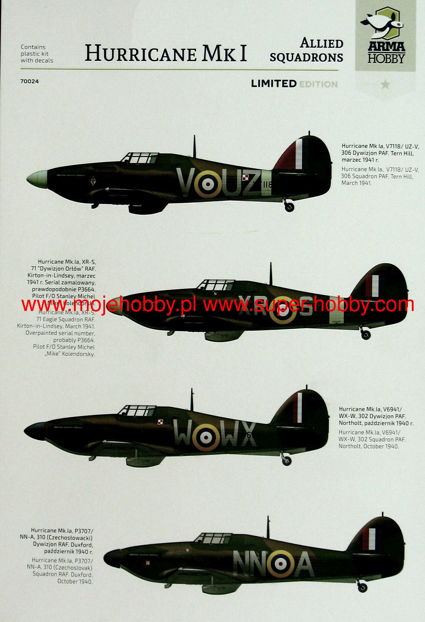 Купить 70024 АВИАЦИЯ HURRICANE MK I ALLIED SQUADRONS (1/72)