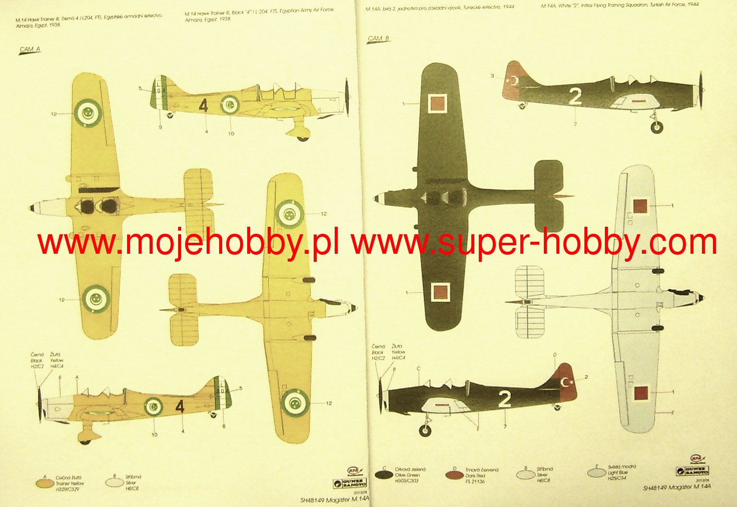 Miles M.14 Magister британский одномоторный, обшитый фанерой учебно-тренировочный самолет с неубирающимся шасси и классическим хвостовым оперением в конфигурации с низкорасположенным крылом. Полет прототипа состоялся в 1936 г., а серийное производство продолжалось в 1937-1941 гг. Самолет производился компаниями Philipps и Powis Aricraft Limited. Magister был первым низкопланом, который был оснащен британскими авиационными школами. Это значительно облегчило подготовку будущих пилотов Спитфайров и Харрикейнов. Самой важной версией, производившейся в больших количествах, был Miles M.14 Magister Mk.I с двигателем De Havilland Gipsy Major мощностью 130 л.с. Он оставался на вооружении до 1947 года. Технические данные: длина: 7,51м, размах крыла: 10,31м, высота: 2,77м, максимальная скорость: 212км/ч, скорость набора высоты: 4,3м/с, максимальная дальность: 610км, максимальный потолок 5500м, вооружение: стационарное -отсутствует.