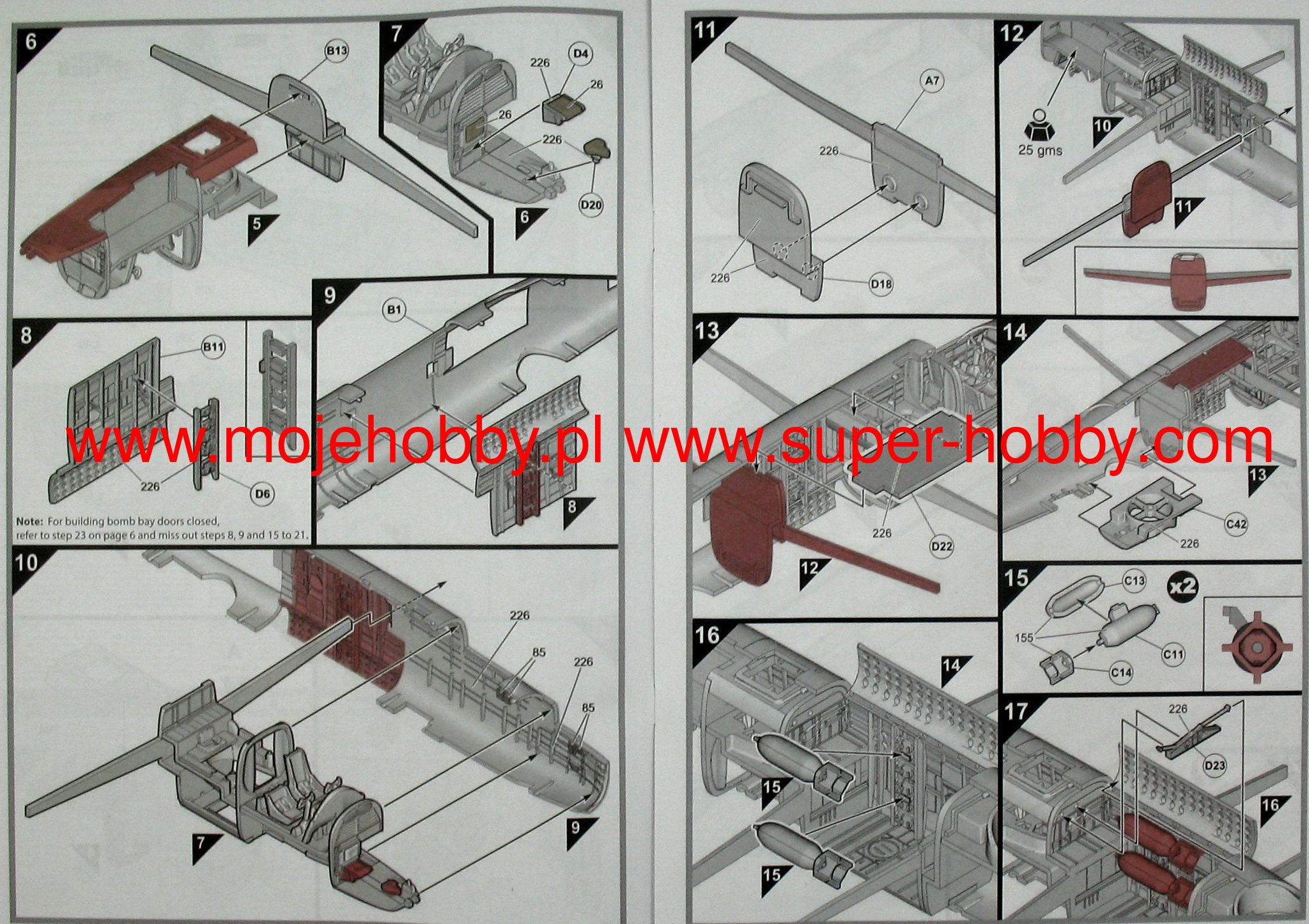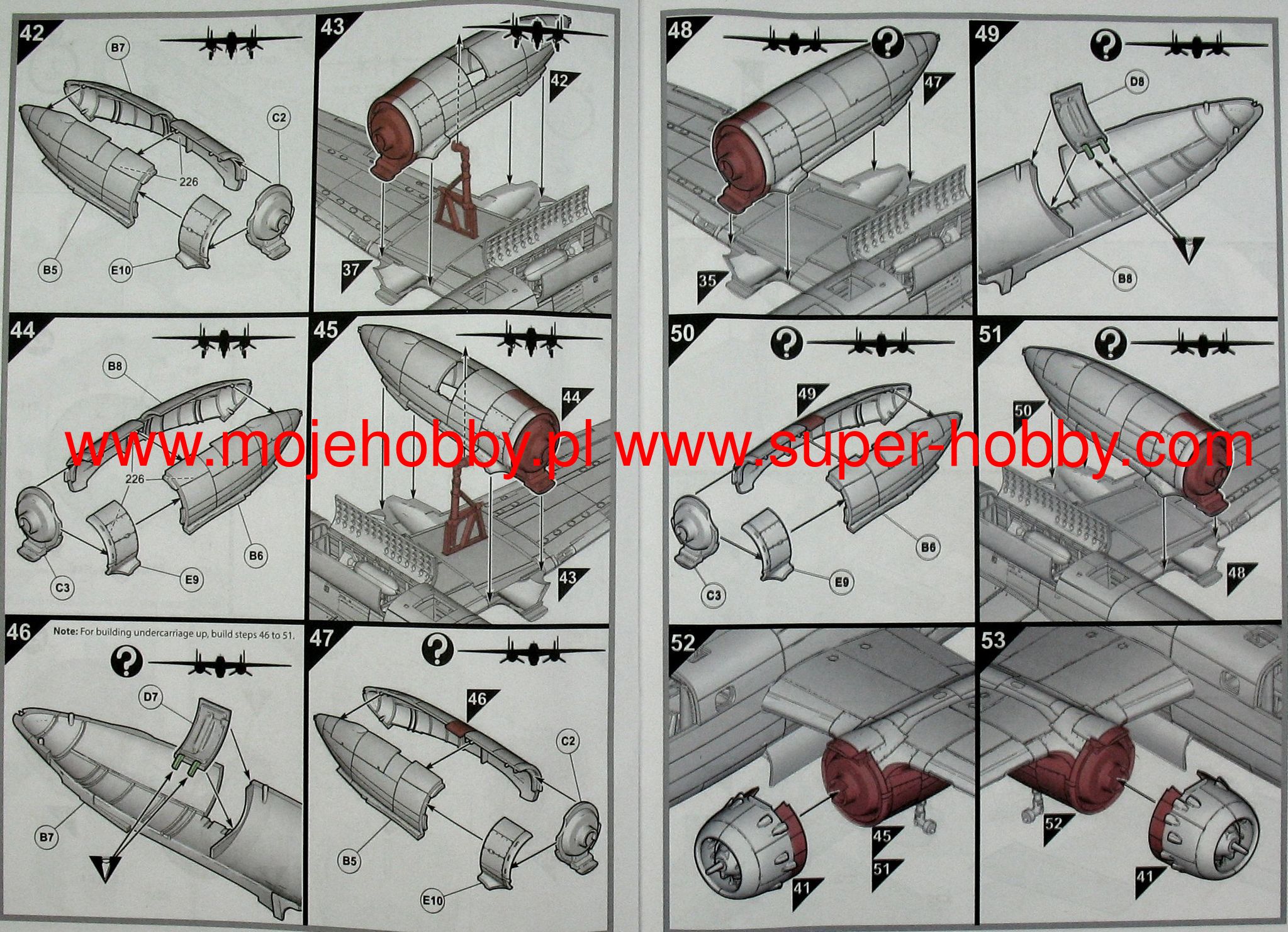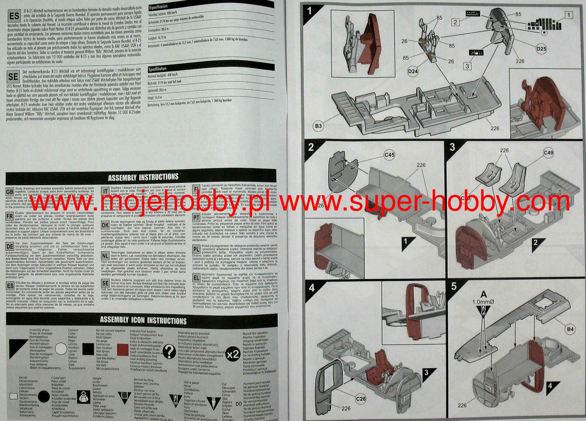 The North American B-25 Mitchell is an American medium bomber from the Second World War. The B-25 is a high-wing, all-metal structure with a retractable three-point landing gear and a double tail tail. The propulsion was two Wright Cyclon engines with the power from 1300KM to 1850KM, depending on the version. The flight of the prototype took place in 1940, and a year later mass production started. During the war, numerous versions of this bomber were produced, including B-25G (with a 75mm gun in the bow of the hull), B-25H (with a 75mm gun and 6 machine guns in the bow of the machine) and the B-25J (with 8 machine guns of 12.7mm in the bow of the fuselage). B-25 planes fought mainly in the Pacific and the Mediterranean basin. A number of them were handed over to Great Britain and the USSR under the lend-and-lease agreement, where they made their combat debut at Stalingrad. From 1943, the Polish 305 squadron flew on the B-25. The B-25 was famous primarily for its daring brave bomb attack on Tokyo in April 1942 (the famous Doolittle raid). Technical data: Maximum speed: 442 km / h, speed of climb: 4 m / s, maximum ceiling 7,600 m, maximum range: 4,300 km, armament: permanent - depending on the version, from 4 to 12 12.7mm Browning machine guns or combination of the 75 mm and km guns. suspended - up to 2700 kg of bombs.