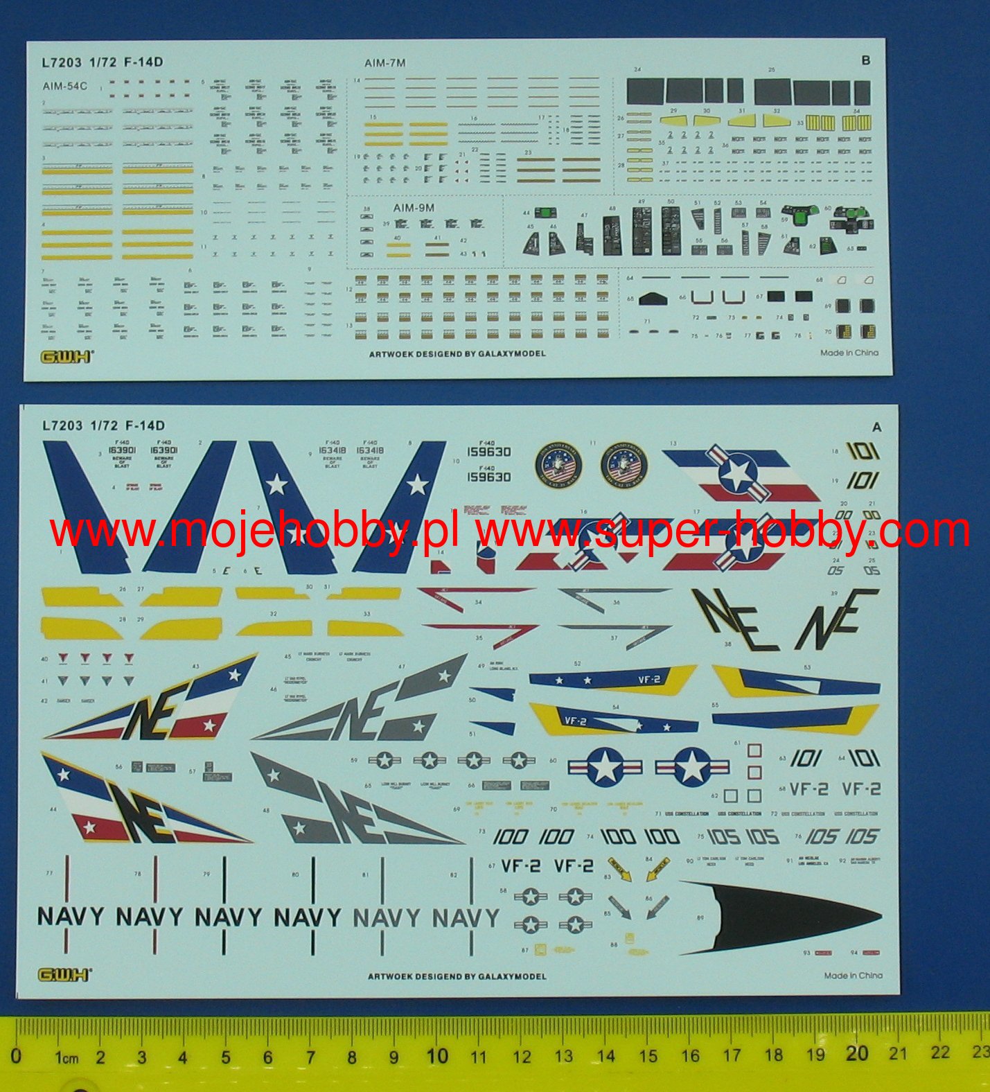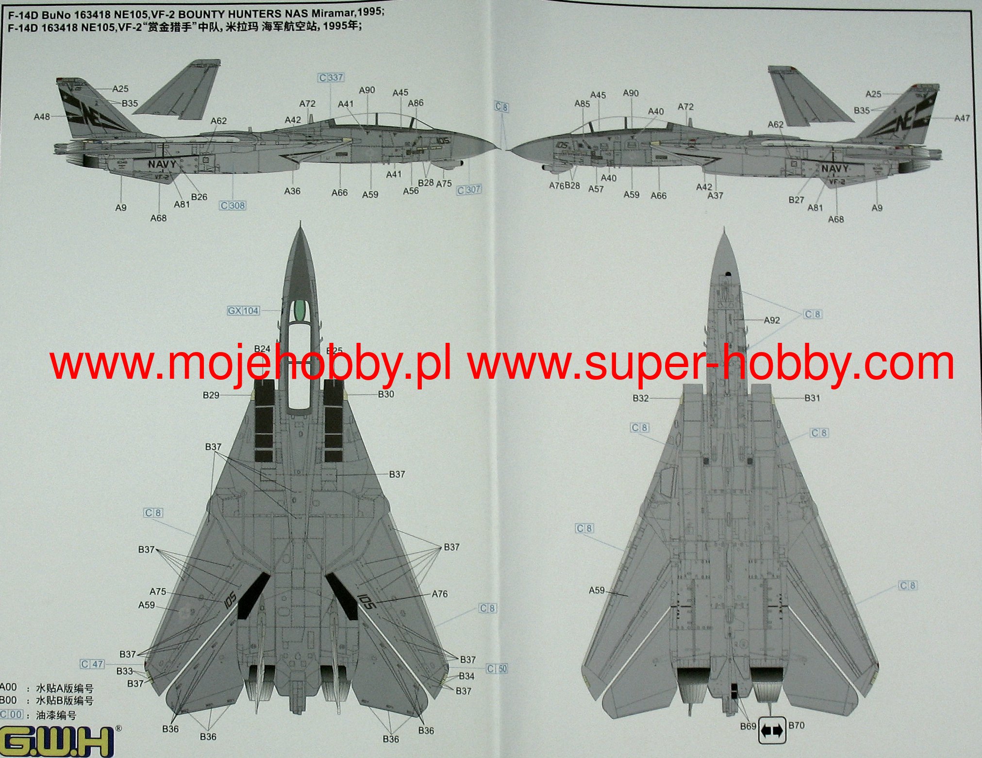 Designed as the U.S. Navy's primary fighter, the F-14 Tomcat could perform air superiority, escort, and strike missions and was undoubtedly one of the most sophisticated and technologically advanced aircraft ever to serve an aircraft carrier. The prototype machine was flown on December 21, 1970, and the first planes were delivered to the US Navy four years later. The last Tomcat planes were decommissioned only in 2006, which perfectly illustrates the high quality and great performance of this machine. The most innovative and characteristic solution for the F-14 are the wings with variable geometry. Controlled by computer or manually by the pilot, they can change their angle of attack from 20 degrees at minimum speed to 60 degrees at supersonic speeds. The changing geometry of the wings also allows for optimal positioning of the wings when maneuvering tightly, thanks to which this powerful aircraft exhibits amazing maneuverability. The heart of the Tomcat weapon system is the Hughes ANG-9 radar, usually cooperating with the AIM-54A Phoenix air-to-air missiles with a range of up to 180 km. Being able to track and attack more than one target is especially important. No less important element of the armament, as shown by the combat experience in the Vietnam War, is the cannon - in the F-14 mounted inside the M-61 Vulcan hull, firing up to 6,000 rounds per minute! Of course, you can also attach other types of weapons to the Tomcat, such as Sparrow, Sidewinder rockets or various bombs. The F-14 also owes a lot of its success to the excellent power unit in the form of a pair of Pratt-Whitney TF30 engines with a thrust of 9300 daN with afterburning. Technical data: Maximum speed: 2480 km / h, climb speed: 153 m / s, practical ceiling 17100 m, maximum range: 3200 km, armament: fixed - single, six-barrel 20mm M61-A1 cannon, suspended - up to 6580 kg cargo.