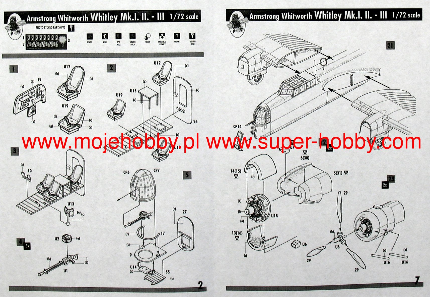 The Armstrong Whitworth Whitley was a British heavy bomber in the spine-wing configuration, with a landing gear retracted in flight from the Second World War. The drive was provided - in the basic version - by two engines Rolls-Royce Merlin X with 1075 hp each. The prototype flight took place in 1936. During serial production, which lasted in the years 1936-1943, approximately 1,800 examples of this aircraft were produced. The armament was (in the Mk. I version): two 7.7 mm machine guns and a load of up to 1514 kg of bombs. Armstrong Whitworth Whitley was developed as part of RAF Command requirements for a new heavy night bomber. When designing the new machine, Armstrong Whitworth relied on a transport plane of its own production designated as AW23 and on prototypes of the AW30 bomber. In 1936, the result of the company's work was approved by the British Air Force, and the new bomber went into mass production, quickly becoming a supplement to the Vickers Wellington bomber. During it, several development versions of the Armstrong Whitworth Whitley machine were created. One of the first was the Whitley Mk. II, which was powered by new, more powerful engines. Shortly thereafter, the Whitley Mk. III, which had clearly enhanced protective armament. The Whitley Mk. V, in which the shape of the vertical stabilizer was changed and the fuselage was extended. The specialized version equipped with radar and intended for maritime patrols was the Whitley GR Mk. VII. Whitley bombers in the period 1939-1942 actively participated in the strategic bombing of Germany, but from 1942 they were gradually moved to training and transport tasks. Coastal defense planes remained in line until 1943. The final withdrawal of this type of aircraft took place in 1945.