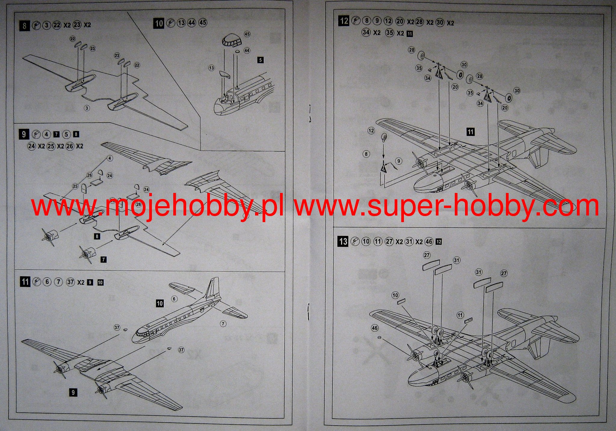 Ilyushin Il-14 was a Soviet, low-wing, twin-engine passenger and transport plane from the Cold War period. The drive was provided by two motors Szwecow ASz-82 T, 1900 KM each. The flight of the prototype took place in 1950, and serial production continued in 1950-1960. The machine had a cruising speed of 300 km / h with a maximum range of 1000 kilometers. Ilyushin Il-14 was developed as an improved and changed version of the Il-12 machine. Compared to its predecessor, the new plane had the same fuselage and landing gear, but it received new engines, wings and a new shape of the horizontal tail. These changes improved the reliability of the machine, improved its flight properties, and positively influenced the economy of operation. In the course of serial production, several development versions were created, among which the following can be indicated: Ił-14P (basic version), Ił-14M (version with an extended fuselage and enlarged passenger cabin), Ił-14T (transport version) or Ił- 14D (version adapted to the transport of paratroopers). The Ił-14 planes were used by countries such as: Czechoslovakia, East Germany, Poland and the USSR.