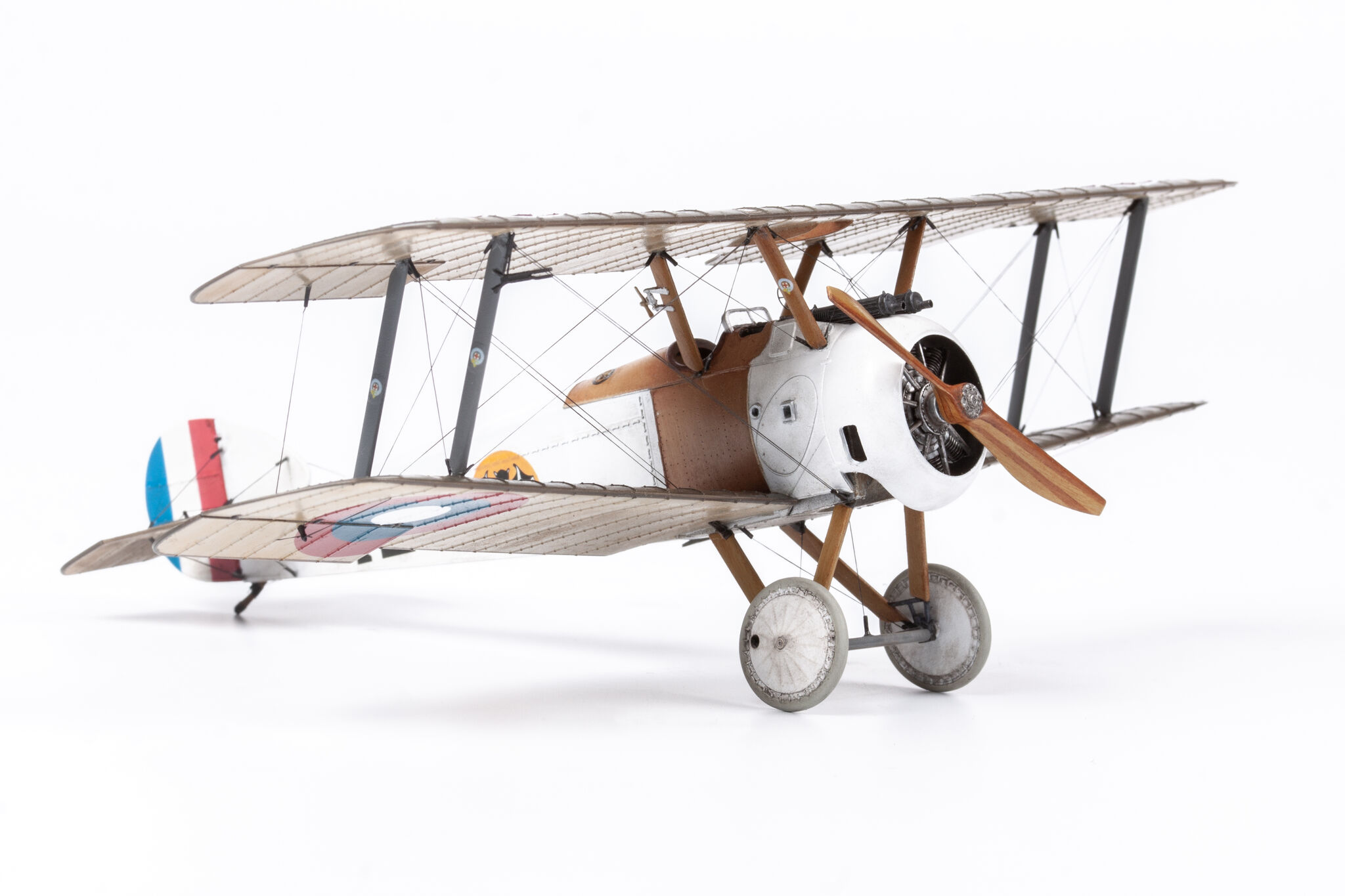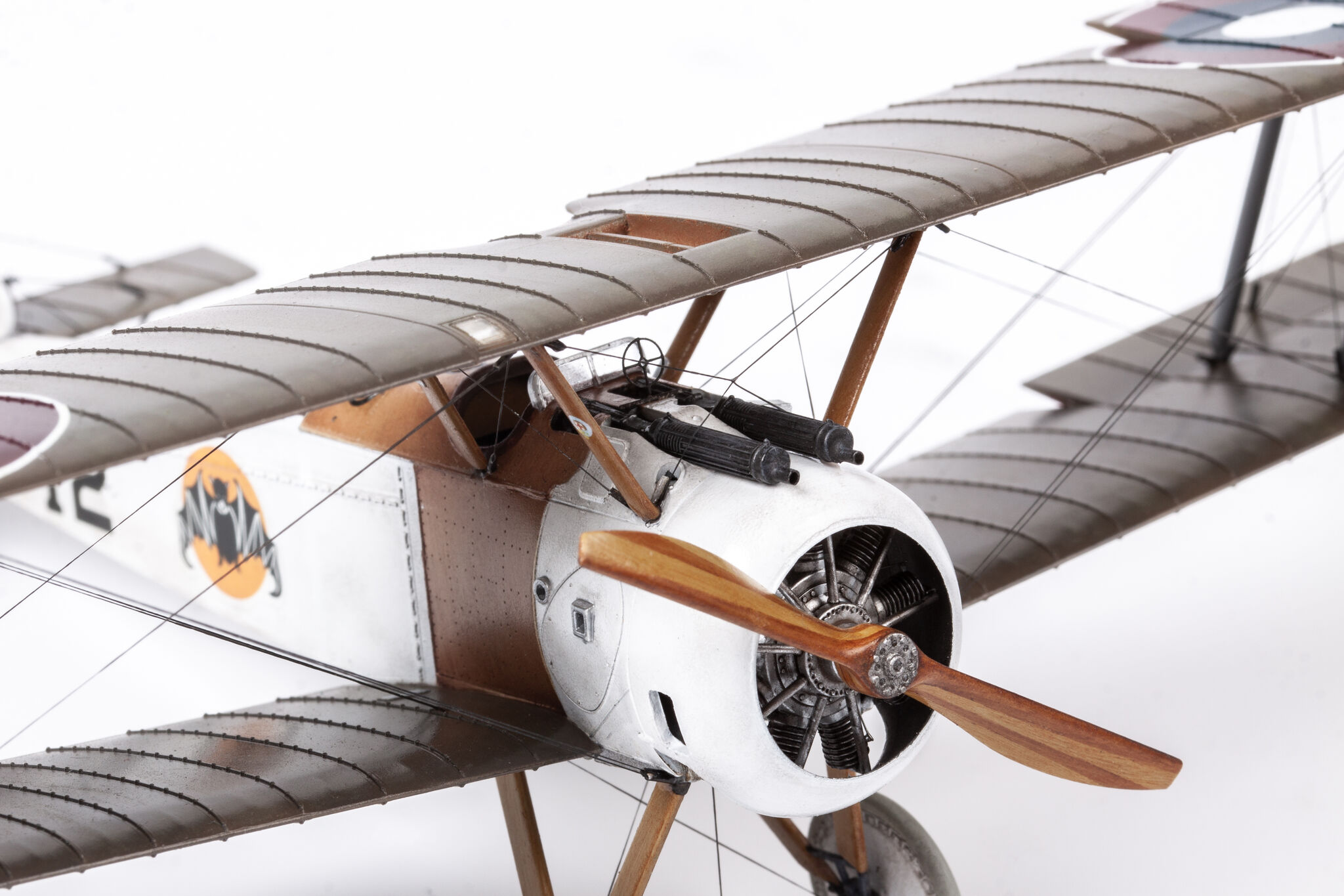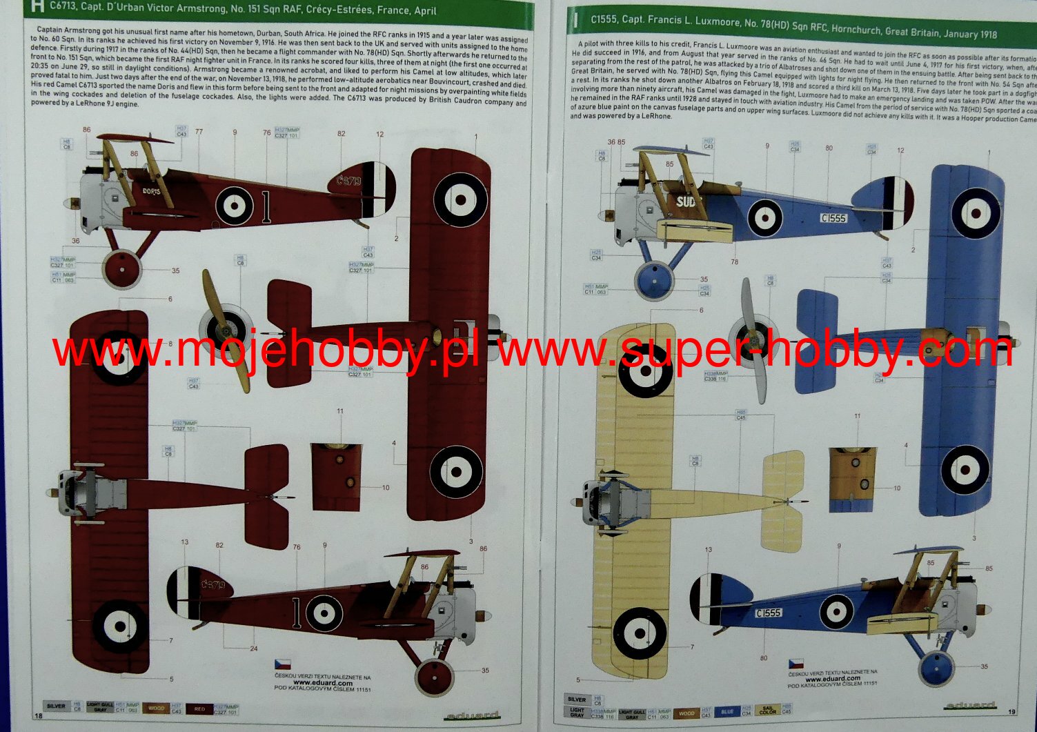 British fighter plane with a wooden structure, a Sopwith Camel biplane from the First World War. The camel owes its nickname to the "hump" in front of the pilot's cabin, which housed machine guns. The Camel was the successor to the successful Sopwith Pup fighter. The first flight of the prototype took place in December 1916, and deliveries to the front units began in the summer of 1917. The first serial batches required great abilities from the pilots and showed asymmetry of flight characteristics, unheard of in other Allied machines. With time, however, the Camel gained a reputation among pilots of a very maneuverable, solid machine with a decent rate of climb. He was a worthy rival to the German machines from the Albatros or Fokker factories. During the course of the war, several versions of the Camel were created. The most important of them are: F.1 - fighter, F.1.3 - night fighter, TF1 - trench fighter, 2F.1 - deck fighter. Thanks to the commencement of serial production by eight different aviation factories, it was possible to produce as many as 5,490 machines during the war. Technical data: Top speed: 185 km / h; climb speed 5.5 m / s, maximum ceiling 6400 m, armament: two 7.7mm Vickers machine guns, firing through a propeller. In the assault version, 7.7mm Lewis machine guns. 3_edu11151_instruction_sheet.pdf