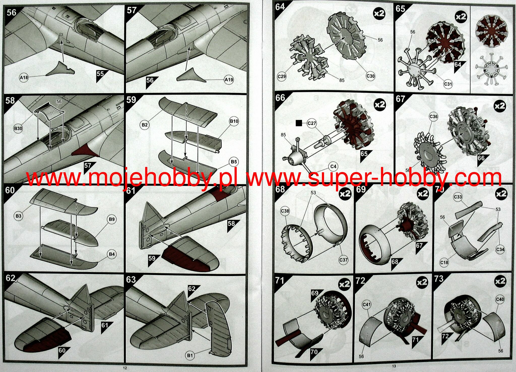 The Bristol Blenheim is a British light bomber and heavy fighter with a full metal and half-shell construction from the Second World War. Depending on the version, it is powered by two Bristol Mercury VIII (Mk.I version) or Bristol Mercury XV (Mk.IV version) engines. The prototype of the Blenheim aircraft was the Bristol 142 airliner, which, due to its great performance, was redesigned for the needs of the RAF. The first flight of the Bristol Blenheim prototype took place in June 1935. Mass production started in the same year. The first version was the Bristol Blenheim Mk.I, which served as a light bomber. In 1937, it was replaced by the Mk.IV version, distinguished by, among others, longer wings and a specific dent in the nose of the fuselage. A version of the heavy fighter (Mk.IF) was also created, but only 200 copies were produced. During the war, they were equipped with the AI Mk I radar and redirected to service as night fighters. In total, about 4,500 Blenheim aircraft were built for the RAF. They were also exported or produced under license in Canada, Finland, Turkey and Greece. Technical data (Mk.IV version): Maximum speed: 428 km / h, speed of climb: 7.6 m / s, maximum ceiling 8,310 m, maximum range: 2,351 km, armament: fixed - 4-5 machine guns cal.7 , 7mm, suspended - up to 540 kg of bombs.