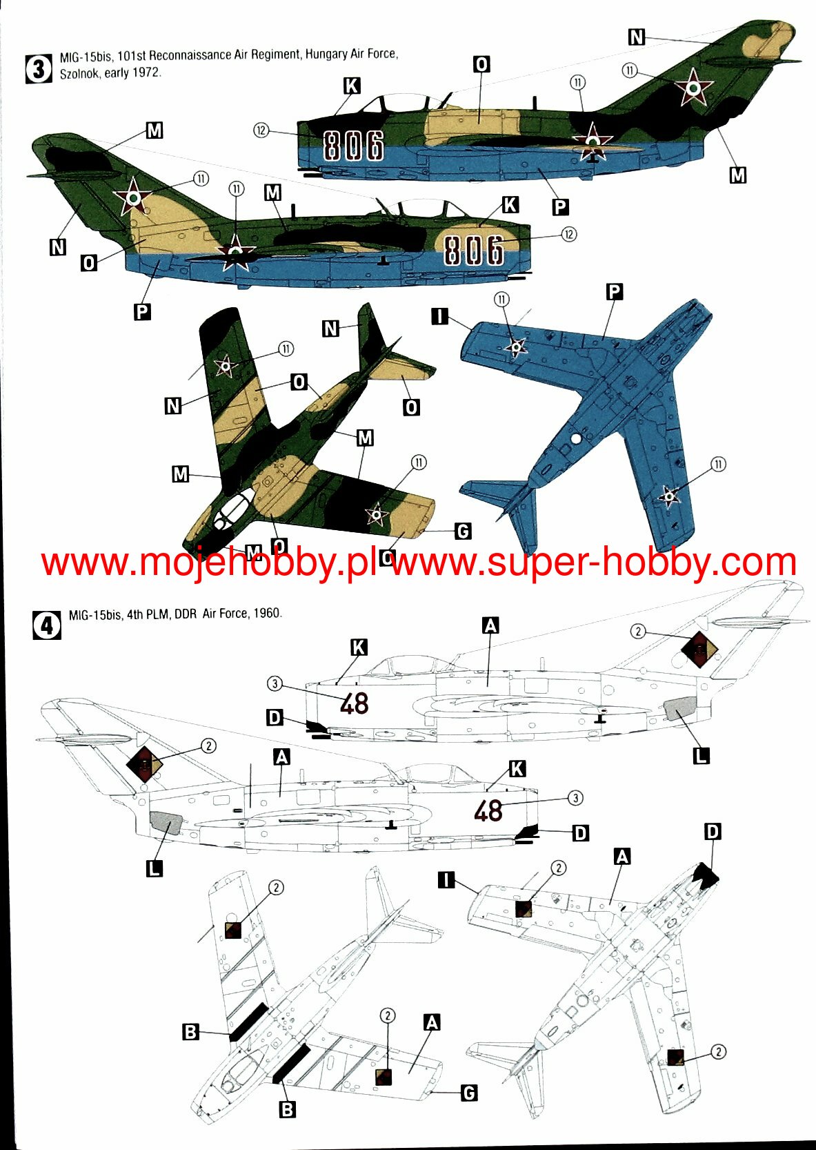 The Mikojan-Guriewicz MIG-15 is a Soviet, single-engine, wide-slant, full-metal jet fighter known by the NATO term Fagot or Midget. The flight of the prototype took place in December 1947, and the entry into the line in 1949. In total, in the USSR and under license (including Poland, as the Lim-1 and Lim-2), over 18,000 machines of all varieties and versions of the MIG-15 were created. lack of a proper engine. Only after copying the British Rolls-Royce Nene Mk.I and using it in the new airframe, it was possible to fly the future MIG 15. The basic versions are the MIG-15P (all-weather fighter), MIG-15UTI (training machine , two-seater), MIG-15SB (fighter-bomber) and MIG-15bis (fighter with the new WK-1 engine). The MIG-15 became a legendary aircraft during the Korean War (1950-1953), where it outclassed Western fighter machines until the arrival of the F-86 Saber. MIG-15 also took part in min. the Middle East conflicts (1966-1967) or the Suez crisis (1956). Technical data (MIG-15bis version): length: 10.1m, wingspan: 10.1m, height: 3.7m, maximum speed: 1075km / h, rate of climb: 50m / s, maximum range: 1310km, maximum ceiling 15500m armament: fixed - 2 NR-23 cannons, caliber 23 mm and 1 Nudelman N-37 cannon, caliber 37 mm, suspended - 200 kg of cargo.