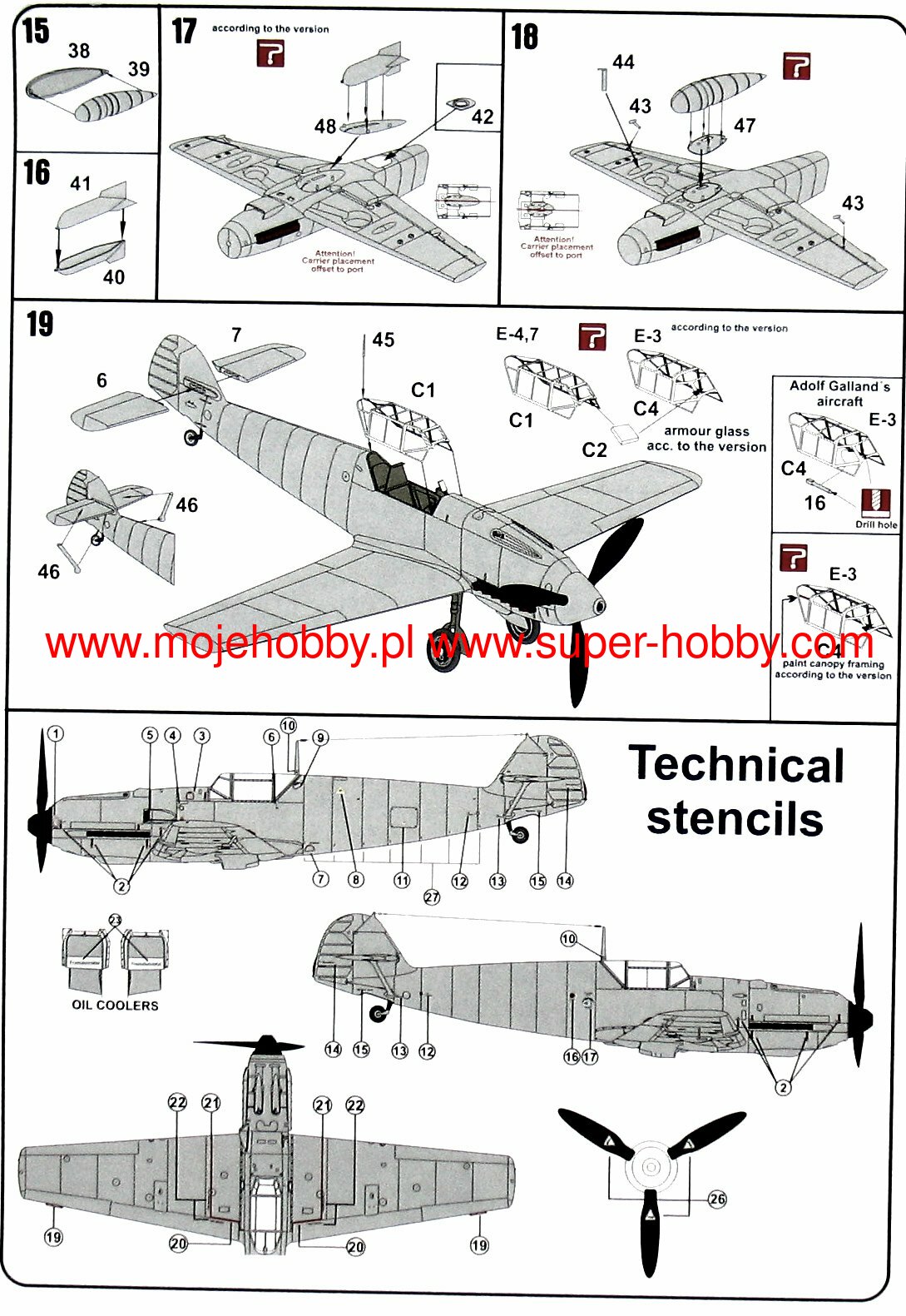 The Messerschmitt Bf-109 is a German metal-structure single-engine fighter in a low wing configuration with a classic tail. It turned out to be the basic and most produced Luftwaffe fighter during World War II. The flight of the prototype took place on May 29, 1935, and serial production continued in the years 1936-1945. In total, it is estimated that a total of about 35,000 Messerschmitt Bf-109 fighters of all varieties were produced, many of which ended up in the Czech and Israeli air forces after the war. The roots of the Bf-109 go back to the competition announced in 1933 by the Luftwaffe for a new fighter plane. In competition with the He-112, the Bf-109 project initially lost, but thanks to Willie Messerschmitt's intrigues, the project could continue and eventually he was the winner of the competition, becoming the Luftwaffe's primary fighter. Several main variants of the Bf-109 were developed in the course of production. The first pre-production series was the Bf-109B (Berta) with different versions of the Junkers Jumo 210 (A or Da) engine. They were tested in Spain from 1937 during the Civil War. The next version is the Bf-109C (Caesar). They had a different engine than the B version, and extensive armament consisting of two 20mm and 2 HP 7.92mm cannons. These machines also fought in the skies of Spain. The third version is the Bf-109D (Dora) with the Junkers Jumo 210 Da or Daimler-Benz DB 600 engine. It fought in the September campaign, but at the turn of 1939/1940 it was replaced by the E version. The most famous model was the Bf-109E (Emil) with a Daimler-Benz 601A or N engine. It was the first to use a three-blade, not a two-blade propeller. Bf-109E fought in the French campaign, over England, and in North Africa and on the Eastern Front. The ace who started his career on the Bf-109E was the famous Adolf Galland. The next version is the Bf-109F (Friedrich), which, according to the German pilots, was the most aerodynamically perfect. It sowed the changed shape of the fuselage, wings, cabin fairings, but no new engine was used. It was put into service at the turn of 1940/1941. As part of the development of the design, further Bf-109 specifications were developed, of which the G (Gustav) version was produced in the largest number of copies. The most important change increasing the machine's performance was the installation of a new 12-cylinder Daimler-Benz DB605A engine with 1475HP. The armament of the Bf-109G was a pair of 13mm machine guns located in the fuselage in front of the cockpit fairing, and the MG151 20mm or heavier MK108 30mm cannon. The last mass-produced version was the Bf-109K (Kurfirst), which production started in October 1944. A Daimler-Benz DB 605DB or DC unit was used as the engine. The Bf-109K was the fastest version produced during World War II, reaching up to 730 km / h. Apart from that, two versions were created - H and Z, but they were rather experimental versions and their mass production did not start. Subsequent improvements in propulsion and armament made the Messerschmitt Bf-109 one of the most dangerous fighters of World War II, and at the same time showed the great potential of the slightly angular airframe created by Willi Messerschmitt. Technical data (version Bf-109 G-6): length: 8.95 m, wingspan: 9.92 m, height: 2.6 m, maximum speed: 640 km / h, rate of climb: 17 m / s, maximum range: 850 km, maximum ceiling 12000m, armament: fixed - 2 MG131 13mm machine guns and 1 MG151 20mm cannon, suspended - 250 kg bombs, or 2 Wfr missile launchers. Gr. 21.