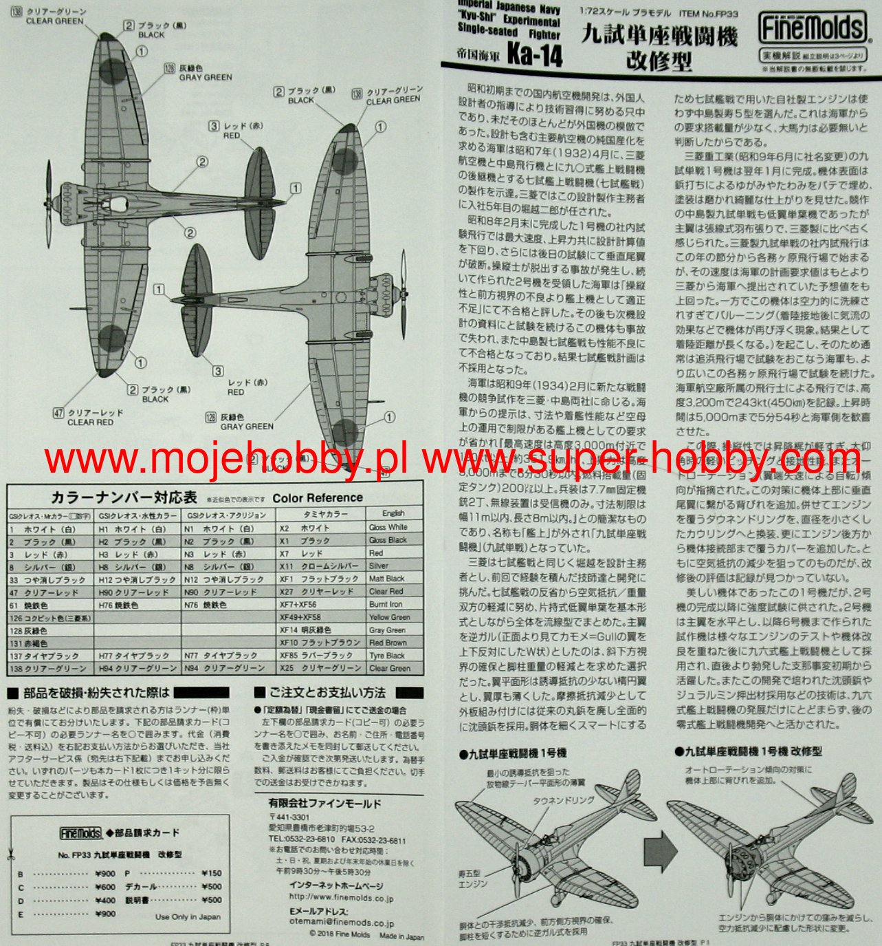 FP33 IJN KA-14 EXPERIMENTAL SINGLE SEAT FIGHTER (KYU-SHI) finemolds 1/72