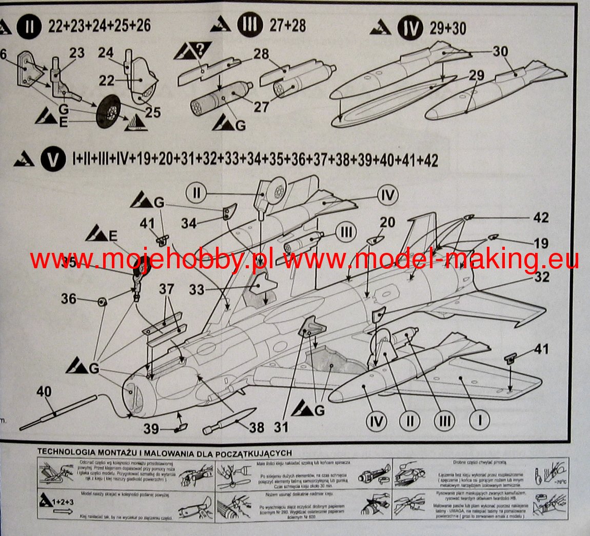 The Mikojan-Guriewicz MIG-19 built in the early 1950s was the first mass-produced supersonic fighter plane. The experience gained in the design and implementation of new technologies in this aircraft has greatly helped the constructors in the construction of the next versions of the MiG aircraft. The MiG-19 in serial production was marked with the symbol SM. The SM-9/1, flown on January 5, 1954, became a direct model for the serial MiG-19. The plane did not yet have a plate horizontal tail. Therefore, the first series of MiG-19 planes had a classic tail. The MiG-19 flight tests with a plate tail continued throughout 1955. Soon after, the serial production of the MiG-19S aircraft, derived from the SM-9/3 prototype, began. Airplanes for various purposes come directly from it. Built in 1956, the MiG-19SW high-altitude fighter. MiG-19R reconnaissance aircraft and a short series of MiG-19SF aircraft reaching speeds of 1560 km / h. The second development line consists of airplanes built on the basis of the SM-7 prototype, equipped with the RP-5 radar on-board station. New interceptors have been developed. The SM-7/2 prototype turned into the MiG-19P aircraft, then the MiG-19PF and the MiG-19PG with the "Gorizont-1" station were built (it was used to guide the aircraft at the target according to the ground command point). In a short series, the MiG-19PU plane with additional rocket accelerators was built. The SM-7 / 2M prototype, equipped with the RP-2U radar station and armed with 4 RS-2U (K-5) guided missiles, was manufactured under the designation MiG-19PM. A variant of the MiG-19PM aircraft was equipped with the MiG-19PMŁ telemetry device "Łazur". MiG-19 planes were used in the Warsaw Pact countries: the USSR, Bulgaria, Czechoslovakia, East Germany, Poland, Romania and Hungary, as well as in China, Egypt, Indonesia, Iraq, Pakistan, Syria and Cuba. The production of the aircraft was started in Czechoslovakia (MiG-19S as S-105) and in China, where the planes were initially produced under the license under the designation J-6, and then their own designs were developed on their basis. Technical data: length: 12.54m, wingspan: 9m, height: 3.9m, maximum speed: 1455km / h, speed of climb: 180m / s, maximum range: 1390km, maximum ceiling 17500m, armament: permanent - 3 cannons NR -30 caliber 30 mm, suspended - the most common were 4 Vympel K-13 air-to-air missiles.