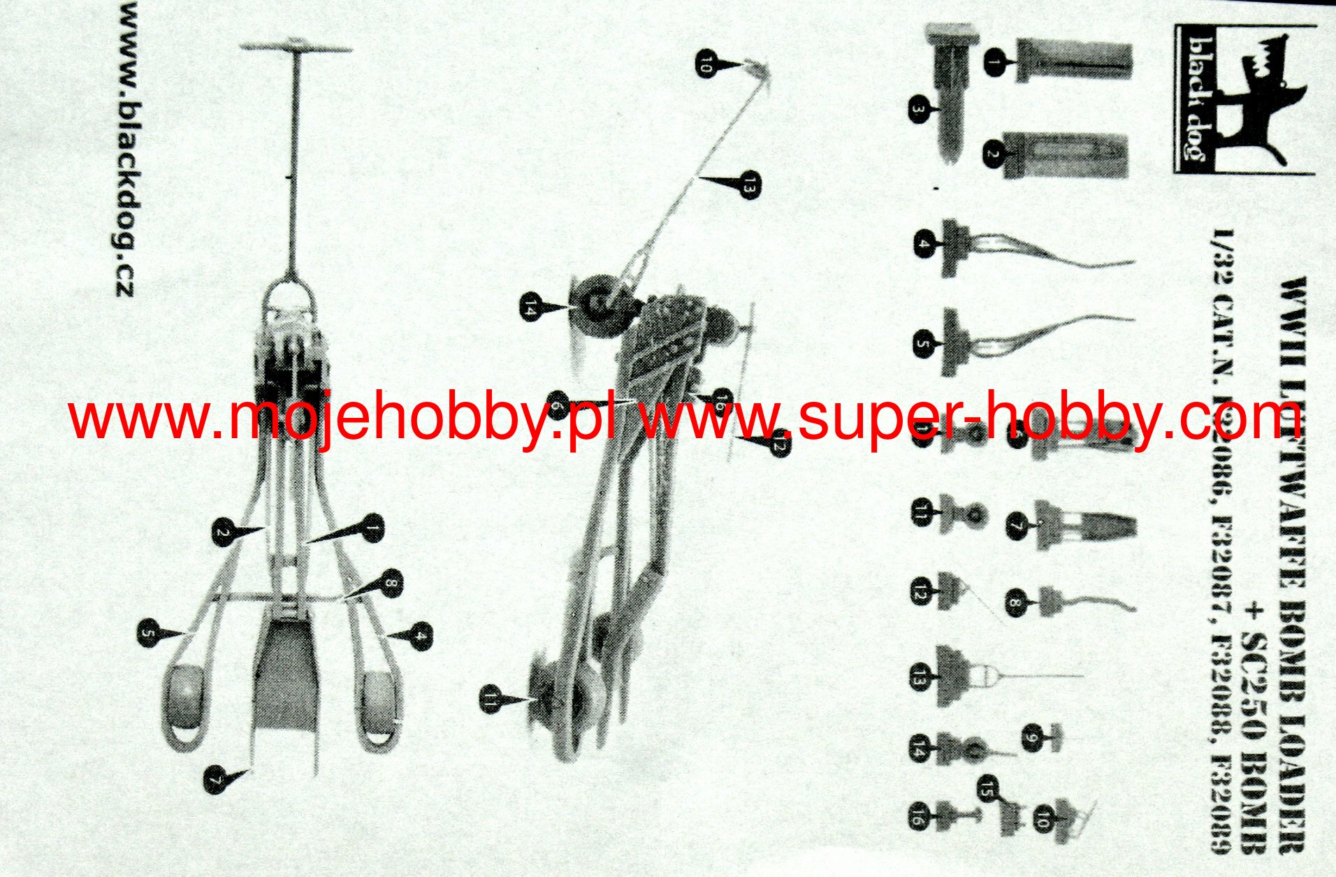 F32086 WWII LUFTWAFFE BOMBENPERSONAL + BOMB LOADER + SC250 BOMB N°1 black dog 1/32