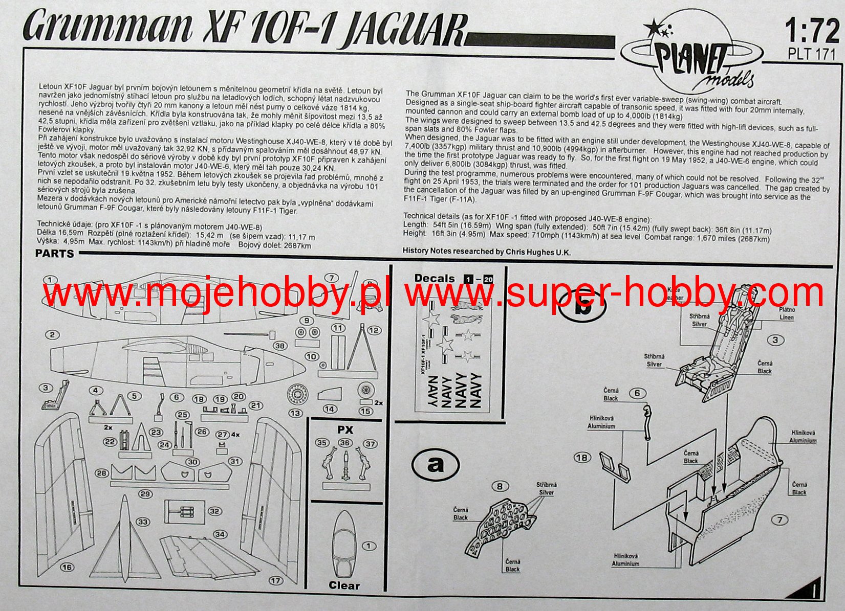 The Grumman XF10F Jaguar was a prototype US-made on-board fighter with an all-metal high-wing structure. The drive was provided by a single Westinghouse J40 engine. The prototype flight took place in 1952 - the machine never entered mass production. The deck armament was to consist of 4 20 mm cannons. The Grumman XF10F Jaguar was commissioned by the US Navy, which in the early 1950s sought to introduce a variable wing geometry fighter with the shortest possible take-off and landing distance and the best possible flight performance. The manufacturer has developed a relatively short machine with a large cross-section, slightly resembling its previous design - the F9F Panther machine. However, the machine turned out to be extremely underdeveloped and generating a lot of problems. First of all, it used the unreliable Westinghouse J40 engine, which in addition did not achieve the assumed power, which had a negative impact on the aircraft's performance. The Jaguar XF10F also showed serious problems in piloting and had a distinct tendency to spin into a spin. Paradoxically, one mechanism that turned out to be relatively reliable was the innovative system of changing the wing geometry. However, due to the disastrous results achieved by Jaguar's XF10F, the entire program was canceled in 1953. Only one prototype of this aircraft was built.