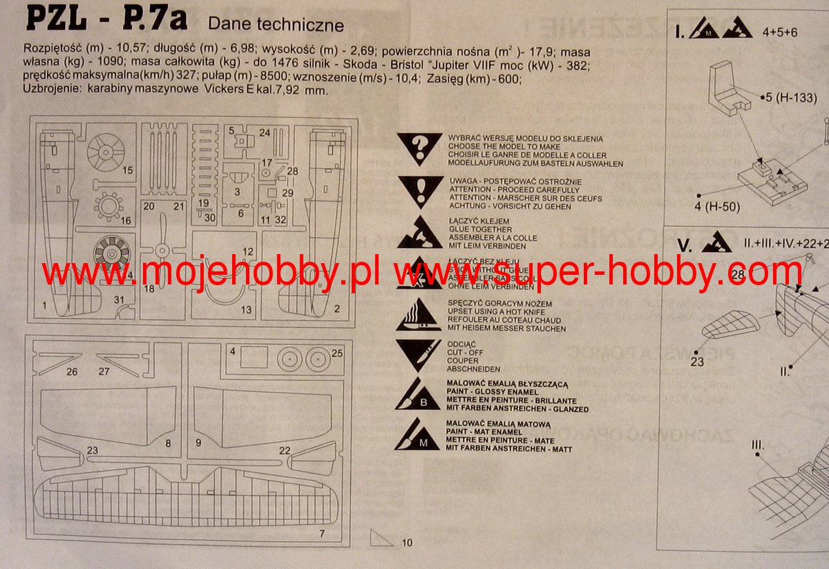 The PZL P.7a is a Polish, single-engine, full-metal fighter with Puławski wings, a fixed landing gear and a classic tail from the Second World War. The drive was a Bristol Jupiter VII F engine with a power of 480HP. The flight of the prototype took place in October 1930, and serial production continued in 1932-1933, ending with the creation of 149 aircraft. PZL P.7a was the first fighter in Polish aviation with an all-metal structure, at the time of its introduction it was also one of the most modern fighters in the world. At the outbreak of the war, 105 PZL P.7a were still in the line. During the September campaign, min. as part of the Pursuit Brigade. Despite the mistakes made during the operation, the PZL P.7a managed to achieve a dozen or so air victories. After the defeat of Poland, some of the surviving planes were evacuated to Romania, which took them over. PZL P.7a served there until 1943. Technical data: length: 6.98m, wingspan: 10.57m, height: 2.69m, maximum speed: 327km / h, climb speed: 10.4m / s, practical ceiling: 3000m, maximum range: 600km, armament: Fixed - 2 7.92 mm Vickers E machine guns or 2 7.92 mm PWU FK wz.33 machine guns.