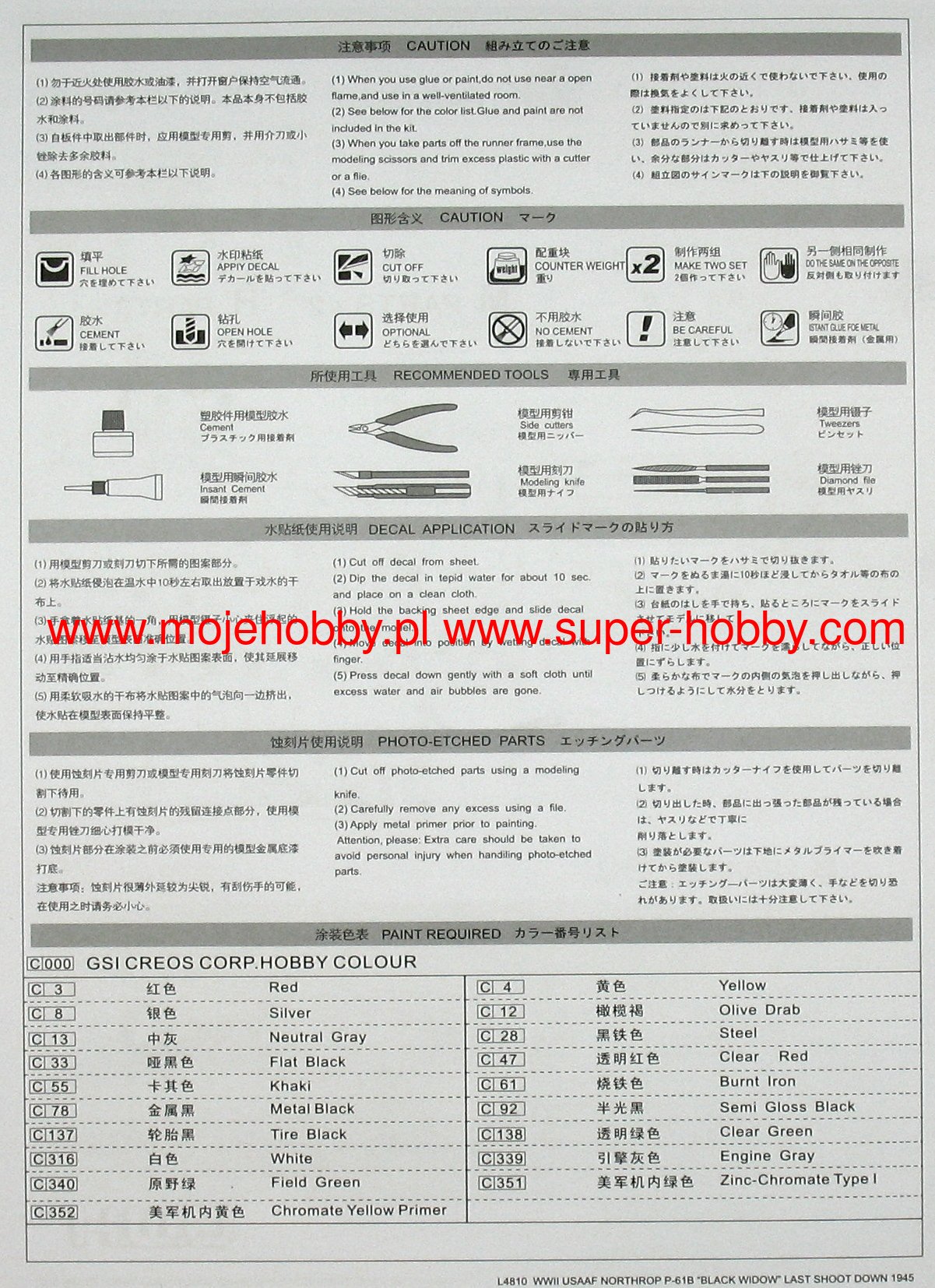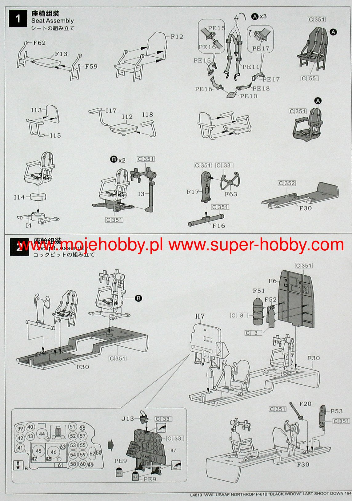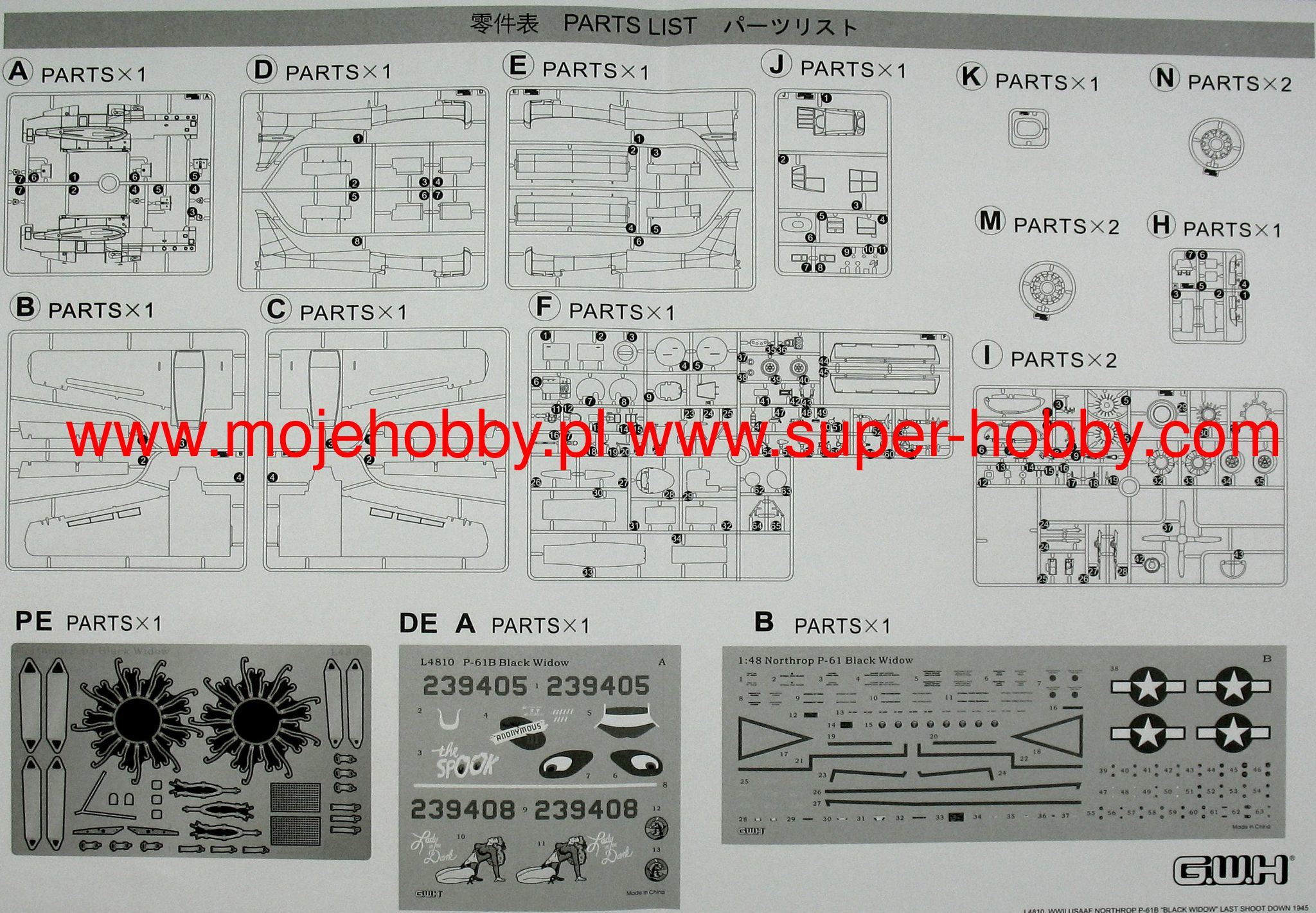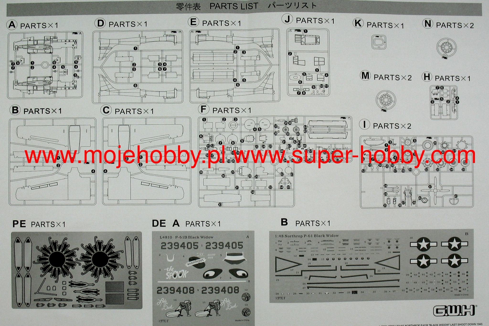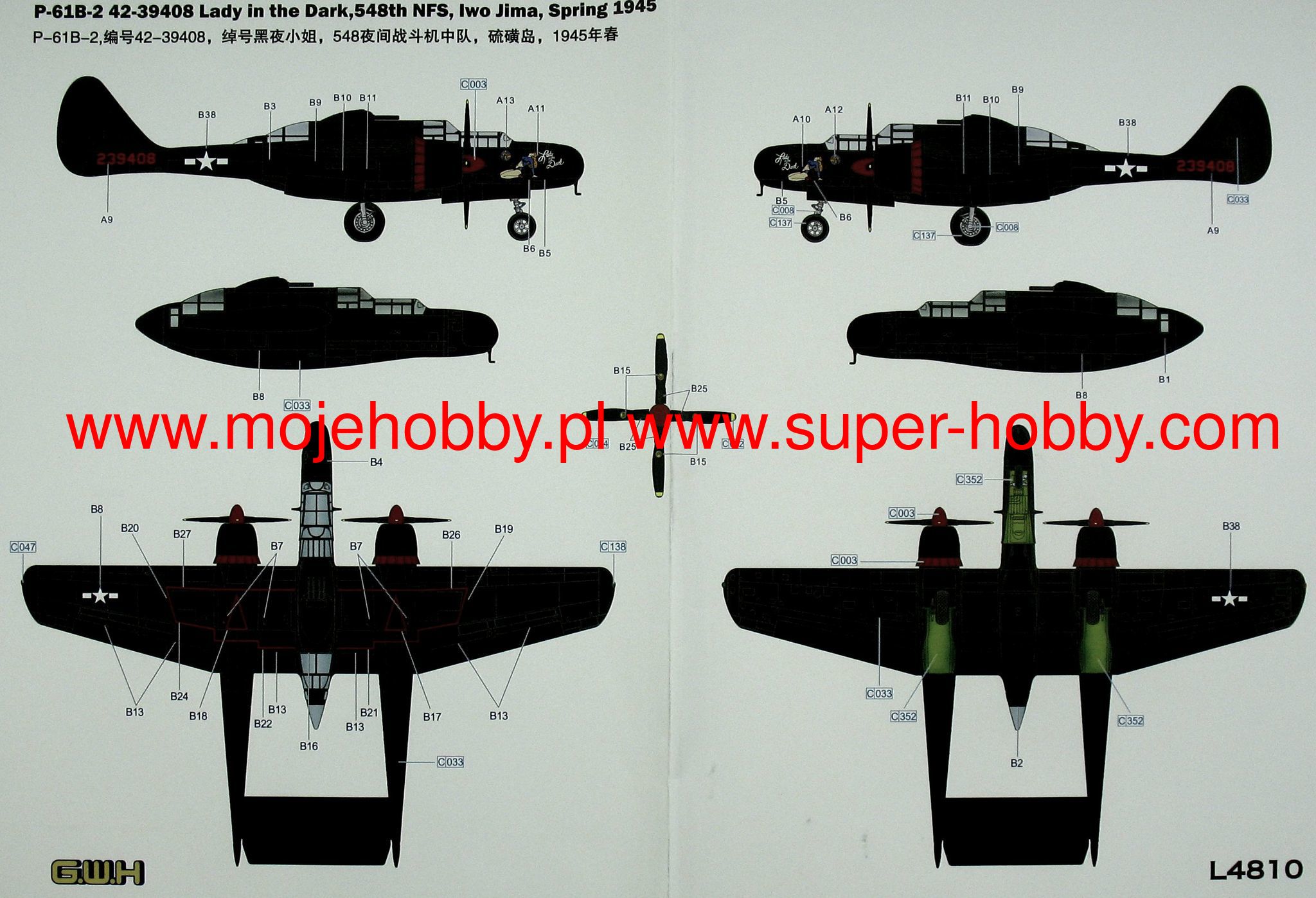 The Northrop P-61 was a three-seat, twin-engine night fighter, two-bar medium wing aircraft with retractable landing gear, adapted to operate from land bases. The prototype's flight took place in May 1942. The plane was made entirely of metal, initially of magnesium alloys, later of duralumin. The half-shell beam hulls were stiffened with metal frames. The crew cabin, located in the middle fuselage, housed a crew of three. The pilot sat in the front section, followed by the deck gunner, and finally the radar operator. In the turretless versions, the radar operator was moved to the gunner's cockpit, and there was an extra seat at the rear. The entire cabin was armored. The P-61 received an SCR-720 airborne radar with a range of 10 km, was located in the nose part of the fuselage, and was coupled to an IFF device for self-alien identification. The radar indications were received in the cockpit of the radar operator who sat at the rear of the fuselage. The armament consisted of four 12.7 mm machine guns mounted in a remotely controlled turret, which was not available on all versions of the aircraft, and four 20 mm cannons mounted in the fuselage. Each crew member had a sight, the pilot used it in typical fighter attacks, when the enemy's flight direction coincided with the flight of his own plane. In other cases, the fire was fired by a deck gunner, who was also a shooting tower operator. If it was necessary to defend against an attack from the rear, the duties of the shooter and the operation of the shooting turret were taken over by the radar operator. In addition, some machines, mainly operating in Europe, performed assault actions using bombs, unguided rockets or napalm tanks. Technical data: length: 15.11m, wingspan: 20.12m, height: 4.47m, maximum speed: 589km / h, climb speed: 112.9m / s, maximum range: 3060km, practical ceiling: 10600m, armament: Fixed - 4 12.7mm M2 machine guns and 4 20mm Hispano cannons, sling - for 2880 kg bombs or 6 127mm HVAR missile launchers.