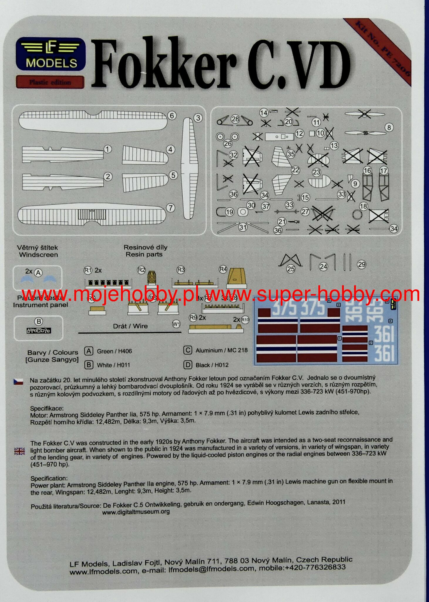 PE7206 FOKKER C.VD NORWAY A.W. SIDELLEY PANTHER ENGINE lf models 1/72