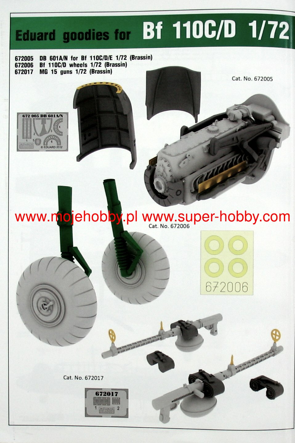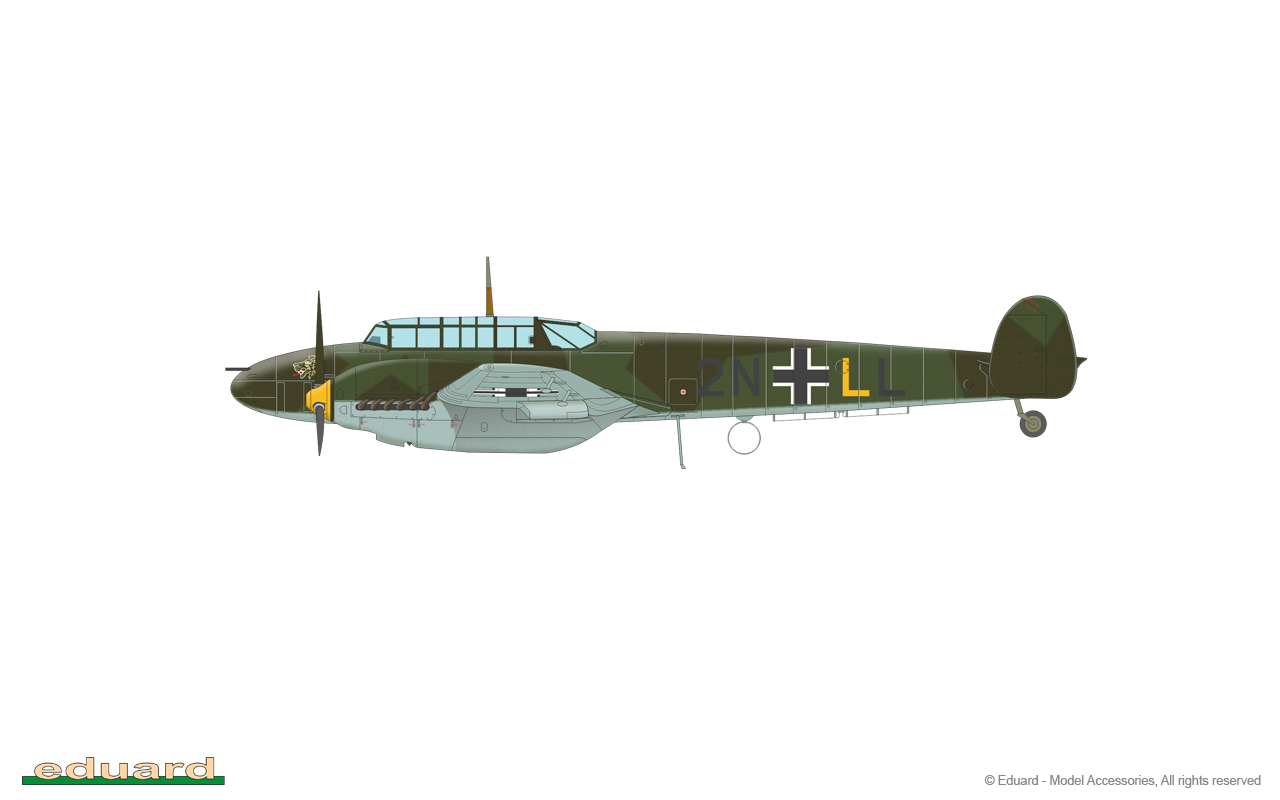The Messerschmitt Bf-110 is a German twin-engine heavy metal fighter with a double tail. The engines used were Junkers Jumo 210Ga, Daimler-Benz DB 601B-1, Daimler-Benz DB 601F, Daimler-Benz DB 605B-1 engines with power from 700KM to 1475KM. The first prototype of the Bf-110 took off in May 1936. The first mass-produced version of the Bf-110 was the C version, which production started in 1939. Version C was regarded as a heavy fighter and performed on average in the September campaign, but much better in the French campaign. However, too heavy and too slow, the Bf-110 suffered considerable losses in the Battle of Britain, which meant that it was systematically moved to the Reich Defense units as a night fighter, which eventually led to the creation of the G and H versions. They were used as night fighters and interceptors against allied bombing expeditions. In combination with the on-board radar (eg FuG 202 or FuG220), the Bf-110 became a very formidable enemy for British bombers. About 5,800 copies of this aircraft were manufactured in the course of production. Technical data (version Bf-110C): length: 12.3 m, wingspan: 16.3 m, height: 3.3 m, maximum speed: 560 km / h, rate of climb: m / s, maximum range: 2410 km, maximum ceiling 10500 m armament: fixed - 5 7.92mm machine guns and 2 20mm MG FF cannons. 3_edu2132_instruction_sheet.pdf
