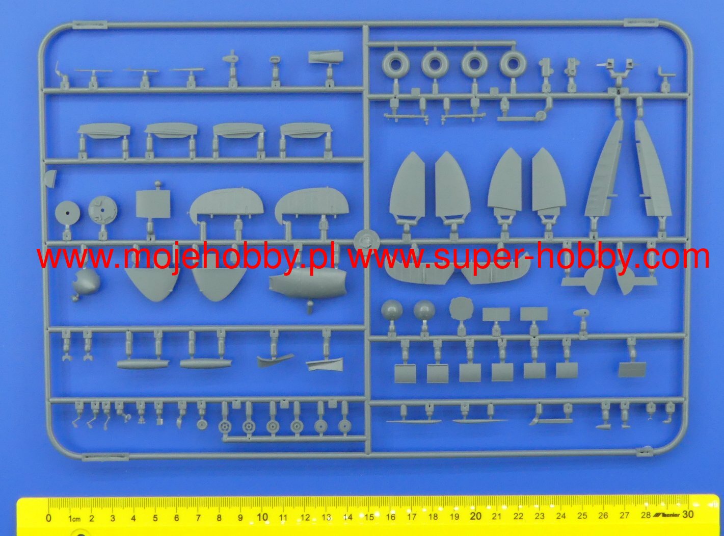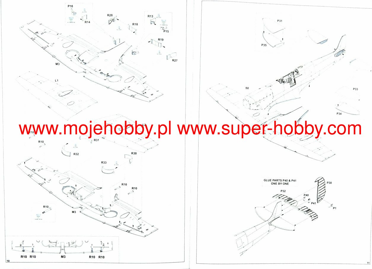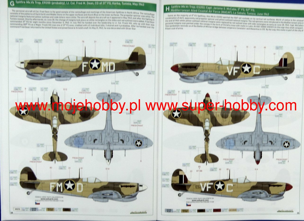 Supermarine Spitfire is probably the most famous British fighter from the Second World War. It was an all-metal machine with a low wing configuration, characteristic elliptical wings, a classic tail and a retractable landing gear. The prototype flight took place on March 5, 1936. The Spitfire proved to be the RAF's staple of the war, which continued to do well after the war, remaining in production for 10 years. The history of the Spitfire began on the drawing desk of RJ Mitchell, Supermarine's lead designer. The first machines went to RAF units in 1938, but when the Battle of Britain began in the summer of 1940, there were already 19 squadrons of modern fighters at the airfields - together with the slightly older Hurricanes of the Islands, 600 aircraft were defending. With the expansion of hostilities, the Spitfire served wherever the RAF operated in the Far East, North Africa and Italy, during the Normandy landings and fighting in France, and finally during the operation in Germany in 1945. For many Britons, he became a symbol of victory in World War II. This wonderful machine has at least a dozen production versions. The most important of them are, among others the first mass-produced Spitfire Mk.I powered by a 1030hp Rolls-Royce Merlin II engine. It was above all this machine that made such an excellent contribution to the Battle of Britain. Many versions of this model have been developed, including PR Mk IA (reconnaissance version) or PR.IG (armed reconnaissance version). Another interesting version was the Spitfire Mk.V with a Rolls-Royce Merlin 45 engine with 1440HP. Later, Merlin 50 engines were also assembled. Serial production of this version started in 1941 and was the RAF's response to the appearance of the Messerschmitt Bf-109F. Another very successful version is the Spitfire Mk.IX, powered by a Merlin 61 engine with a 4-blade propeller. It was created as an opponent to the Focke-Wulf Fw-190 and was put into production at the end of 1941. This version was modified many times and, for example, in 1944 it got a new gyro sight, an enlarged rudder or a different wing system. Another major version is the Spitfire Mk.XIV with a Rolls-Royce Griffon 61 engine and a five-bladed propeller. Serial production started in October 1943. One of the last series produced was the Mk.21 version. This version had a Griffon 61 engine, a strongly reinforced structure and sheathing, the wings were extended, increasing their flying surface. Mass production started in March 1945. Technical data (Mk.XIV version): length: 9.14m, wingspan: 11.23m, height: 3.05m, maximum speed: 717km / h, rate of climb: 18.5m / s, practical ceiling: 13,200m, range maximum: 1815 km, armament: fixed - 4 7.7mm machine guns and 2 20mm Hispano Mk II cannons, suspended - up to 225 kg of bombs. 3_edu11149_instruction_sheet.pdf