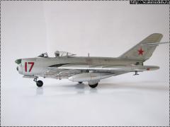 The Mikojan-Guriewicz MIG-17 is a Soviet, single-engine, medium-wing metal jet fighter with slanted wings and a classic tail, known in the NATO code as Fresco. The prototype flight took place in January 1950. The MIG-17 was an extension of the MIG-15 design. The changes focused on a new engine (Klimov WK-1F), better aerodynamics and the use of radar on one of the development versions. Several basic versions of this aircraft were created. The first mass-produced version is the MiG-17F. Another one, equipped with a radar, was the MiG-17PF, and the MiG-17PFU version had the option of guiding the missiles using the on-board radar. The plane was also produced under the license of min. in Poland and China. In Poland, serial production started in 1956 under the designation Lim-5, and an assault version (Lim-6bis) was also created. The MIG-17 aircraft is still used by the Mali and North Korean aviation. Technical data (MIG-17F version): length: 11.26m, wingspan: 9.63m, height: 3.8m, maximum speed: 1145km / h, rate of climb: 65m / s, maximum range: 2060km, maximum ceiling 16600m armament: fixed - 2 Nudelman-Rikhter NR-23 cannons, caliber 23 m and 1 Nudelman N-37 cannon, caliber 37 mm, suspended - up to 500 kg of bombs and rockets.