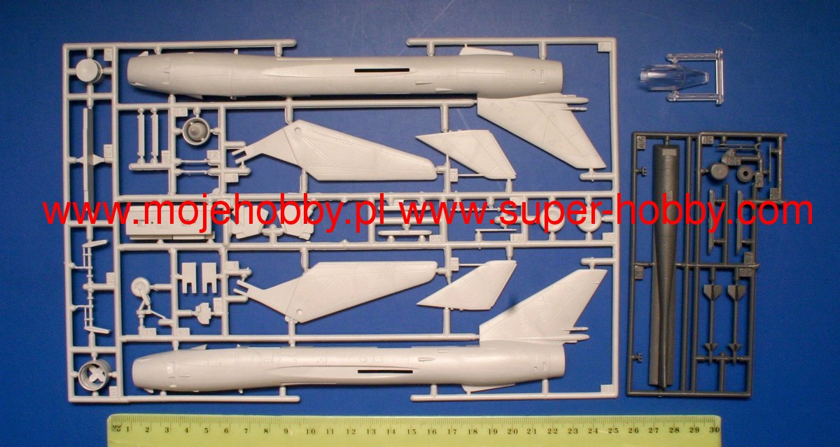 Note: Comany Mistercraft frequently changes, without any notice, the decals that come with the model, so they may differ from the photos and descriptions on our website. If you need a specific version, please let us know about that by entering the appropriate notice in the comments field when placing the order. The Sukhoi Su-17 Fitter is a Soviet single-engine attack bomber with variable wing geometry. The flight of the prototype took place on August 2, 1966. The line was entered in 1970. The Su-17 is a development of the Su-7 design, has the same fuselage, engine, landing gear and tail, but has different wings. Initially, the machine was designated as Su-7IG. A dozen or so versions of this aircraft were created, which under the designations Su-20 and Su-22 were massively exported to allied countries, including Poland. Technical data: length: 19.02m, wingspan (folded wings): 10.03m, height: 5.1m, maximum speed: 1.7Ma, rate of climb: 230m / s, practical ceiling: 17000m, maximum range (with additional): 2250 km, combat radius with full load: 180 km, armament: fixed - 2 NR-30 30mm cannons, suspended - up to 4070 kg of cargo.