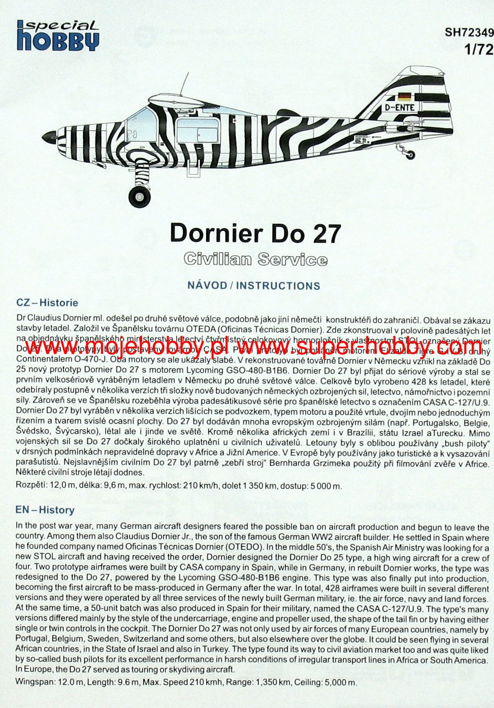 The Dornier Do 27 is a German civilian multi-role, metal-structure high-wing aircraft. The drive is provided by a single Avro-Lycoming GO-480-B1A6 engine with 274 HP. The flight of the prototype took place in 1955, and serial production began in the same year and continued in 1965, ending with the production of over 600 copies of this aircraft. The Dornier Do 27, was originally designed as the successor to the Do 25 for the Spanish Air Force as a new light multi-role reconnaissance aircraft. However, Dornier quickly saw the possibility of offering the Do 27 to other military customers as well. This was due to the very solid structure of the machine, its good performance, the possibility of a short take-off and landing (STOL) and low minimum speed. Finally, the Do 27 was sent to the air forces of Spain, Germany and Portugal. Especially the latter user used it intensively during the fighting in his then colonies in Angola and Mozambique in the 1960s and 1970s. It is worth noting that the Do 27 was the first mass-produced aircraft in West Germany after 1945.