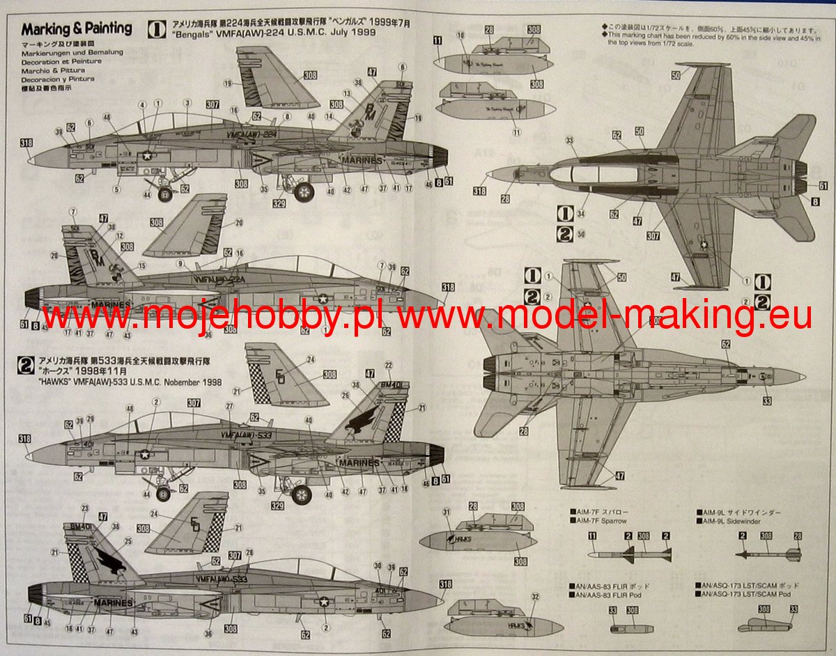 McDonnell-Douglas / Northrop F / A-18 Hornet is an on-board fighter and attack aircraft capable of operating in all weather conditions. The roots of the F / A-18 go back to 1974 and the F-17 prototype, which was of interest to the US Navy command this year. The contract for the serial construction of the aircraft was concluded in 1976. In order to accelerate the work, the Northrop concern entered into cooperation with the McDonnell-Douglas concern. As a result, on November 18, 1978, the test flight of the prototype took place, and a year later, successful landings on the aircraft carrier. Since 1982, the aircraft has been delivered to linear units with General Electric F404-GE-402 engines as the propulsion unit. The plane is produced in several versions. The first were the F-18A (fighter) and F-18B (training). Foreign orders from Spain, Canada and Australia appeared quickly. In 1987, a version of the F-18C was created, adapted to the use of AMRAAM missiles. A year later, the F / A-18D, a two-seat version of the F-18, entered service in all weather conditions, and could be used as an attack aircraft. On its basis, the reconnaissance version of the R / F-18D was created. The newest versions (the so-called Super Hornet) -F / A-18E and F / A-18F are very modified versions of the F / A-18D. They are characterized by an increased length of the fuselage, wingspan and their surface. They also have new General Electric F414 engines and a decidedly expanded and modernized avionics. They were presented for the first time in 1995. The EA-18G Growler electronic warfare plane was also created on the basis of the F-18. All versions of the F / A-18 met with favor of pilots, they are characterized by low failure rate, ease of use and very good flight parameters. Hornets took part in the operation against Libya in 1986 and in the Operation Desert Storm in 1991. Technical data (version F / A-18 C): Maximum speed: 1915 km / h, speed of climb: 254 m / s, practical ceiling 15 240 m, maximum range: 3340 km, operating radius: 280-740 km, armament: fixed- Single 20mm M61A-1 six-barrel cannon, underslung - up to 7700 kg of cargo.