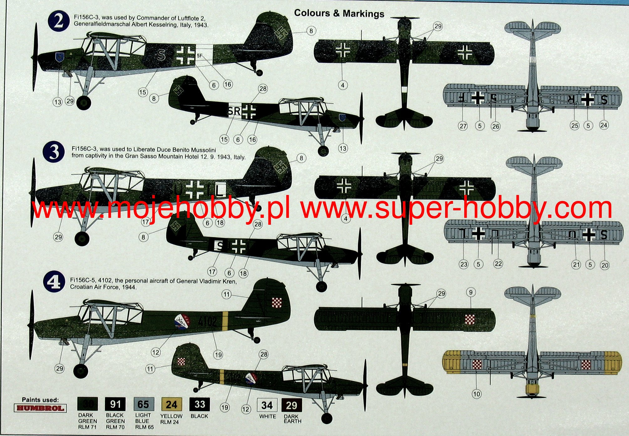 Fieseler Fi-156 Storch (нем. аист) был самым успешным из самолетов короткого взлета и посадки, использовавшихся во время Второй мировой войны. Самолет впервые поднялся в воздух в 1937 году, и его способность работать с взлетно-посадочных полос длиной менее 200 метров была быстро оценена, особенно в миссиях снабжения и разведки. Хотя единственным вооружением машины был задний пулемет, а максимальная скорость не превышала 175 км/ч, Люфтваффе очень хвалили самолет и широко использовали его во время войны. Одной из самых известных акций, в которых принимали участие самолеты Fi-156, стало освобождение Бенито Муссолини 12 сентября 1943 года спецназовцами во главе с Отто Скорцени. Во время Великой Отечественной войны было создано более 2800 самолетов этого типа всех модификаций. Самой популярной версией была модель C, выпускавшаяся во многих вариантах, оснащенная восьмицилиндровым двигателем Argus AS-10. Всего было выпущено 2634 экземпляра всех вариантов этой версии. О классе конструкции свидетельствует тот факт, что производство продолжалось после войны в Чехословакии и даже во Франции, где фирма Morane-Saulnier продала самолет французским ВВС под названием MS 500/502 Criquet. Технические данные: Максимальная скорость: 175 км/ч, скороподъемность: 4,8 м/с, максимальный потолок 4600 м, максимальная дальность: 380 км, вооружение: стационарное один пулемет MG15 калибра 7,92 мм.