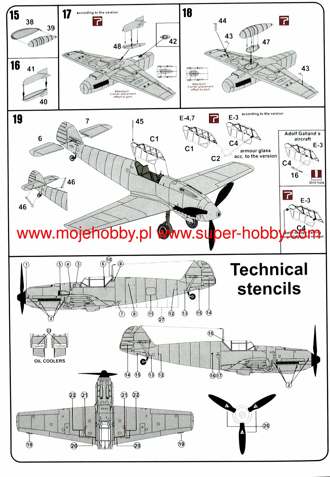 The Messerschmitt Bf-109 is a German metal-structure single-engine fighter in a low wing configuration with a classic tail. It turned out to be the basic and most produced Luftwaffe fighter during World War II. The flight of the prototype took place on May 29, 1935, and serial production continued in the years 1936-1945. In total, it is estimated that a total of about 35,000 Messerschmitt Bf-109 fighters of all varieties were produced, many of which ended up in the Czech and Israeli air forces after the war. The roots of the Bf-109 go back to the competition announced in 1933 by the Luftwaffe for a new fighter plane. In competition with the He-112, the Bf-109 project initially lost, but thanks to Willie Messerschmitt's intrigues, the project could continue and eventually he was the winner of the competition, becoming the Luftwaffe's primary fighter. Several main variants of the Bf-109 were developed in the course of production. The first pre-production series was the Bf-109B (Berta) with different versions of the Junkers Jumo 210 (A or Da) engine. They were tested in Spain from 1937 during the Civil War. The next version is the Bf-109C (Caesar). They had a different engine than the B version, and extensive armament consisting of two 20mm and 2 HP 7.92mm cannons. These machines also fought in the skies of Spain. The third version is the Bf-109D (Dora) with the Junkers Jumo 210 Da or Daimler-Benz DB 600 engine. It fought in the September campaign, but at the turn of 1939/1940 it was replaced by the E version. The most famous model was the Bf-109E (Emil) with a Daimler-Benz 601A or N engine. It was the first to use a three-blade, not a two-blade propeller. Bf-109E fought in the French campaign, over England, and in North Africa and on the Eastern Front. The ace who started his career on the Bf-109E was the famous Adolf Galland. The next version is the Bf-109F (Friedrich), which, according to the German pilots, was the most aerodynamically perfect. It sowed the changed shape of the fuselage, wings, cabin fairings, but no new engine was used. It was put into service at the turn of 1940/1941. As part of the development of the design, further Bf-109 specifications were developed, of which the G (Gustav) version was produced in the largest number of copies. The most important change increasing the machine's performance was the installation of a new 12-cylinder Daimler-Benz DB605A engine with 1475HP. The armament of the Bf-109G was a pair of 13mm machine guns located in the fuselage in front of the cockpit fairing, and the MG151 20mm or heavier MK108 30mm cannon. The last mass-produced version was the Bf-109K (Kurfirst), which production started in October 1944. A Daimler-Benz DB 605DB or DC unit was used as the engine. The Bf-109K was the fastest version produced during World War II, reaching up to 730 km / h. Apart from that, two versions were created - H and Z, but they were rather experimental versions and their mass production did not start. Subsequent improvements in propulsion and armament made the Messerschmitt Bf-109 one of the most dangerous fighters of World War II, and at the same time showed the great potential of the slightly angular airframe created by Willi Messerschmitt. Technical data (version Bf-109 G-6): length: 8.95 m, wingspan: 9.92 m, height: 2.6 m, maximum speed: 640 km / h, rate of climb: 17 m / s, maximum range: 850 km, maximum ceiling 12000m, armament: fixed - 2 MG131 13mm machine guns and 1 MG151 20mm cannon, suspended - 250 kg bombs, or 2 Wfr missile launchers. Gr. 21.
