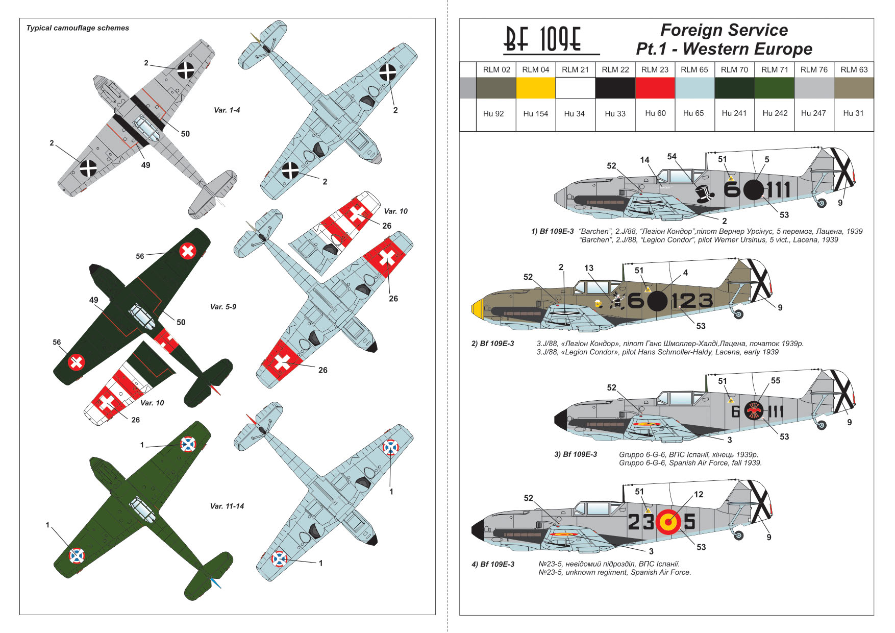 14306 MESSERSCHMITT BF 109E "FOREIGN SERVICE ACES", PT.1 - SPAIN, SWITZELAND, YUGOSLAVIA, SERBIA