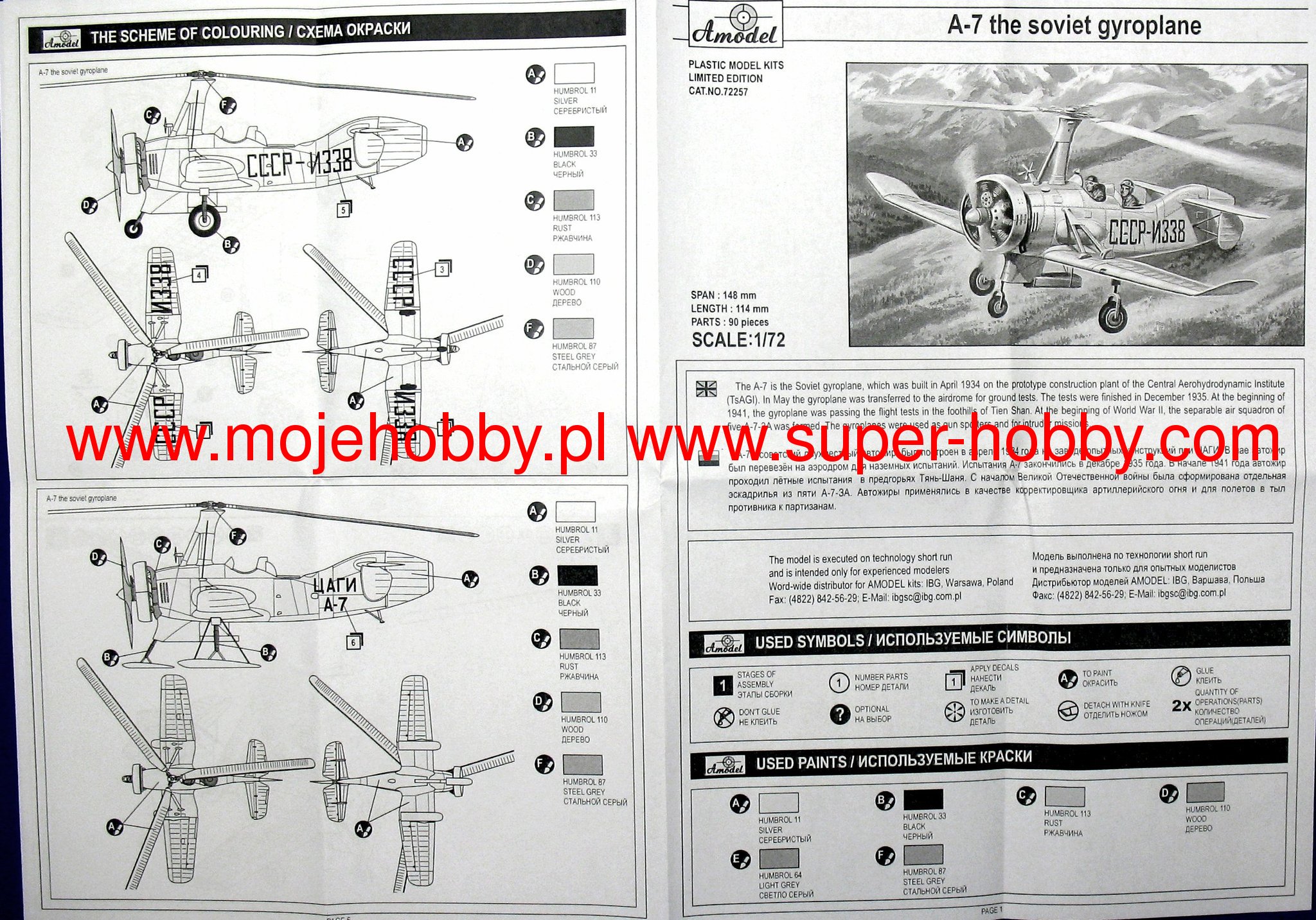 The Kamow TsAGI A-7 was a Soviet gyroplane (autogyre) from the early period of World War II. The machine first flew in 1934 and entered service in 1938. The overall length was 8.43 meters with a main rotor diameter of 15.18 meters. The drive was provided by a single M-22 engine with 473 hp. The maximum speed did not exceed 195 km / h, with a flight range of 400 kilometers. The deck armament consisted of three 7.62 mm machine guns. The A-7 gyroplane was designed in the TsAGI design office, and the Kamowa plant was responsible for its production. It was the first serial gyroplane in the USSR air force and the first large-scale military gyroplane in the history of aviation. It was used for reconnaissance, rescue and transport missions. It was rarely used to correct artillery fire. Despite its undoubted advantages, such as the simplicity of piloting, good maneuverability and the small size of the landing site needed to take to the air and later landing, the machine also had its disadvantages - mainly limited lifting capacity and range, relatively short flight time and high fuel consumption. Rotorcraft of this type were used to a small extent during the Winter War with Finland (1939-1940) and at the beginning of the Soviet-German war (1941-1945).