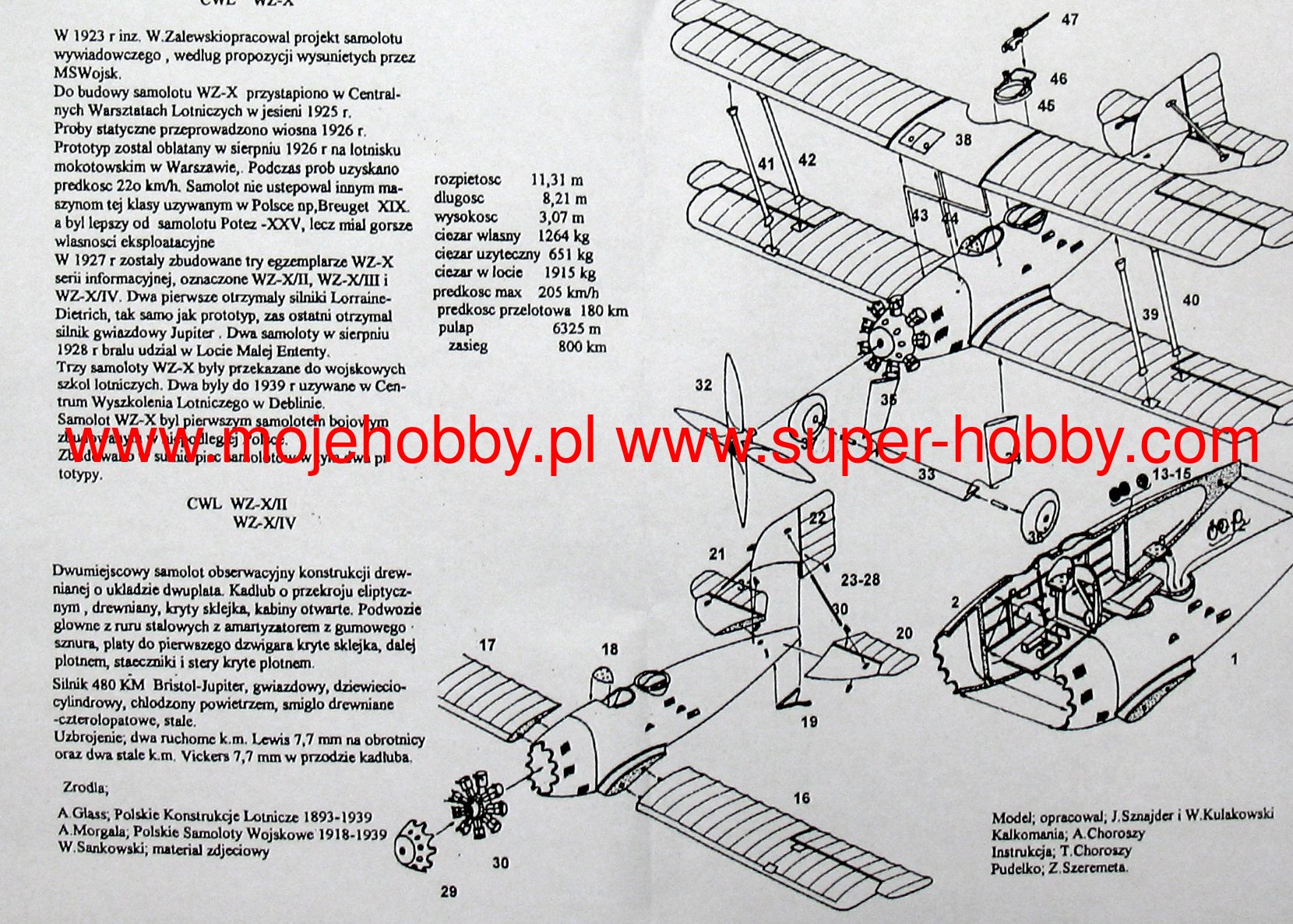 The CWL WZ-X was a Polish prototype reconnaissance plane with a wooden structure, in a biplane configuration. The drive was provided by a single engine Lorraine-Dietrich 12Eb with 478 hp. The flight of the prototype took place in 1926, and in the years 1926-1927 only 4 copies of this aircraft were produced. The aircraft was armed with 4 machine guns (Lewis or Vickers) cal. 7.7 mm. CWL WZ-X was created in response to the demand of the Polish Air Force for a new reconnaissance aircraft with the strongest possible armament. The Central Aviation Workshop (CWL) was responsible for the construction of the new machine. After short tests and trials, in 1927 the so-called information series. It showed that the CWL WZ-X has good performance, at least equal to the French Breguet 19 or Potez XXV aircraft, it also has good handling properties and good maneuverability. However, despite this, Polish decision-makers decided to purchase ready-made machines of the above-mentioned French types, as well as to purchase the licensed production of Potez XXV aircraft. As a result, despite its advantages, the CWL WZ-X never entered mass production, and the produced units were sent to the flight school in Dęblin.