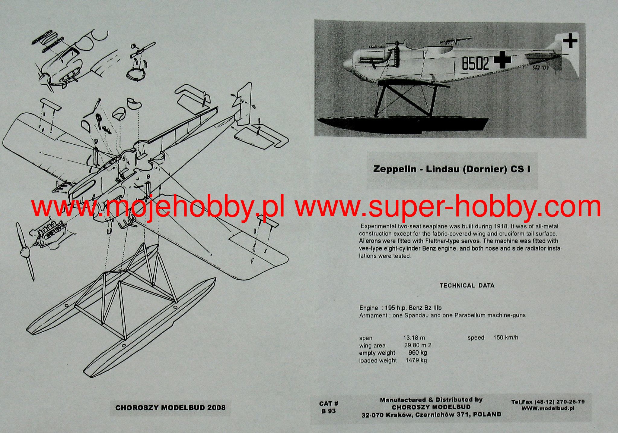 The Zeppelin Lindau CS.1 was a German WW1 metal construction prototype low wing aircraft. The prototype flight took place in March 1918. However, the machine never entered mass production - probably only 3 were made. The drive was provided by a single Benz Bz.III engine with a capacity of 195 HP. The maximum speed was up to 150 km / h. The machine was armed with three 7.92 mm machine guns. The Zeppelin Lindau CS.1 was designed by the later acclaimed aircraft constructor Claude Dornier as a new fixed-float seaplane for the German Navy. A novelty was the use of an all-metal structure in the plane, covered with canvas mainly on the wings. Also, the use of only one flap was not the norm at the time. The machine also had a two-person cabin. Despite the fact that the first flight tests of the machine turned out to be rather promising, it was not possible to put it into mass production due to the economic and resource problems in which Imperial Germany found itself in 1918.