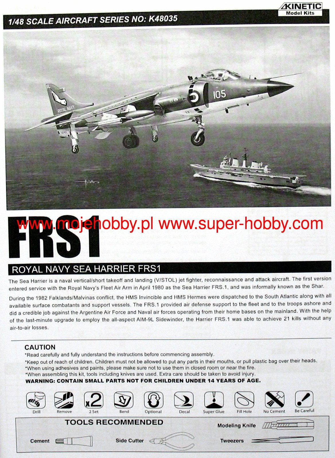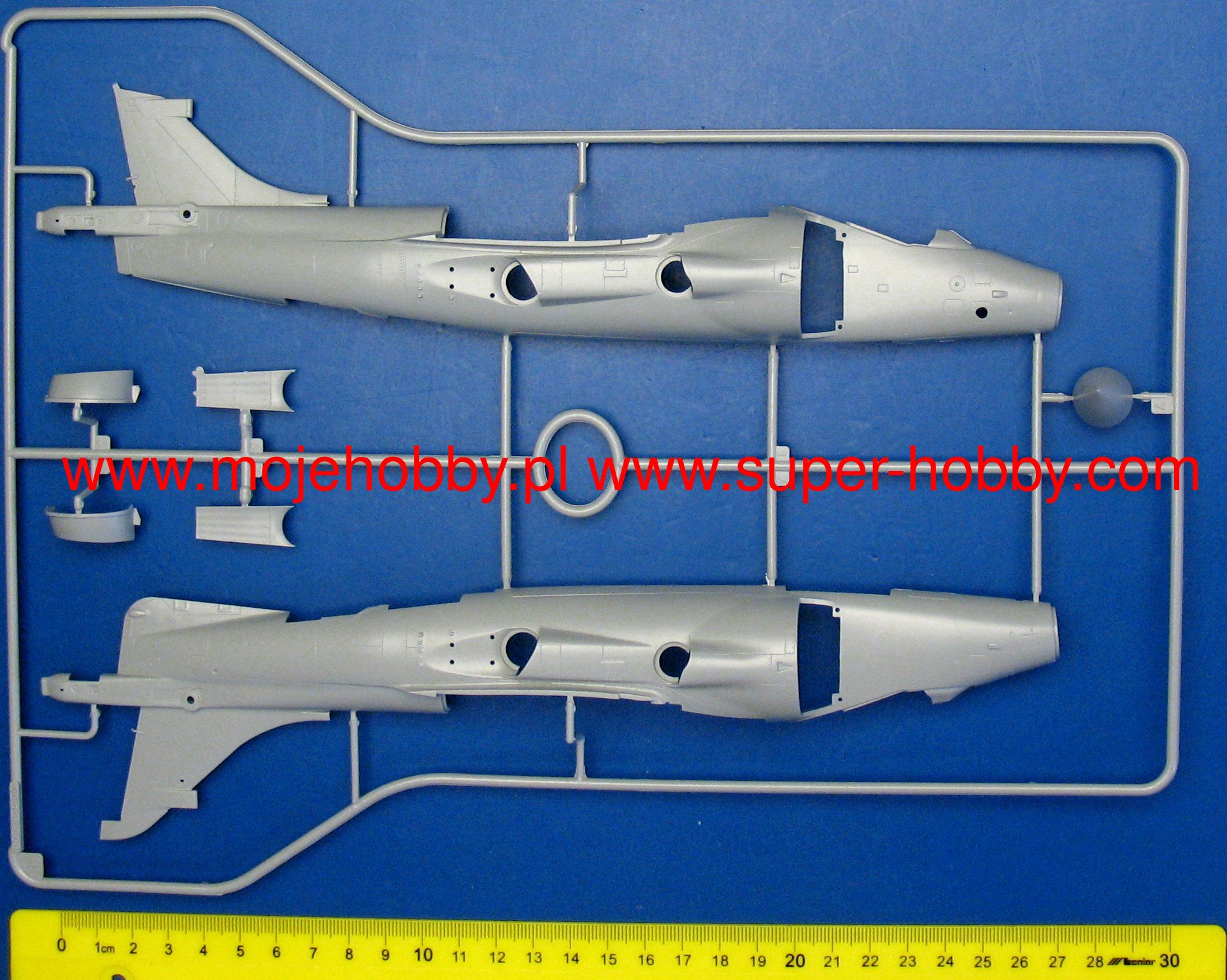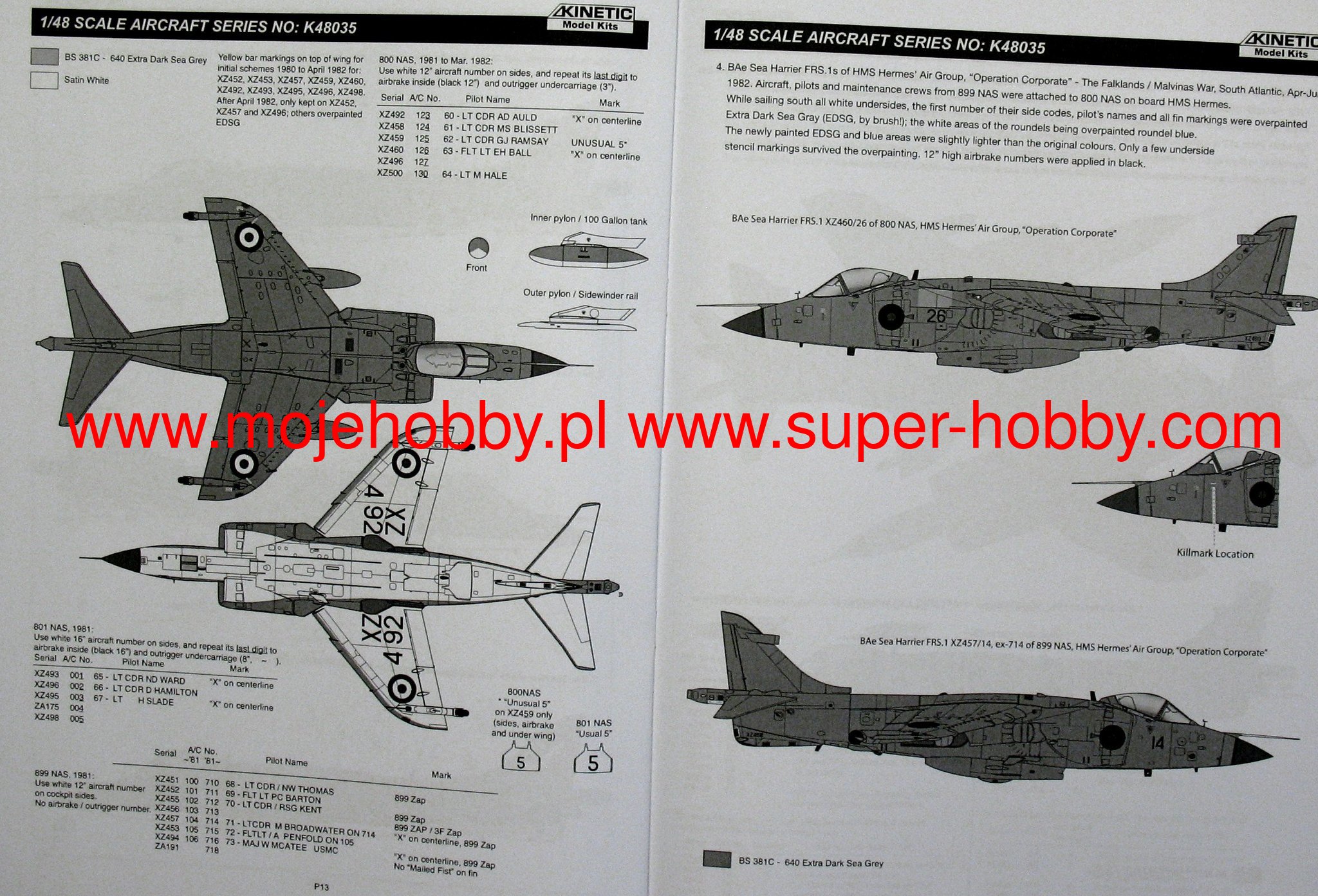 The BAe Harrier is a British single-seat V / STOL fighter, attack and reconnaissance aircraft with a duralumin, half-shell structure. The origins of Harrier's construction can be found in 1957, when Lord Sydney Camm of Hawker Aircraft and Dr. Stanley Hooker of Bristol Siddeley Engines started the construction of a tactical aircraft using the latest turbo-fan engine from Bristol plants, then known as BS.53. It was specially adapted to the vertical thrust vector ensuring the vertical take-off of a fixed-wing aircraft. Engine exhaust gases were directed to four staggered nozzles placed in pairs at the front and rear of the fuselage. The range of rotation of the nozzles exceeded 90 degrees, which allowed the exhaust gases to be directed directly rearward in normal flight, vertically downward for take-off and landing, or to any angle during the transition phase. Around the engine, Camm constructed a compact, conventional, high-wing metal airframe. In the forward part of the fuselage there was a one-person cabin, next to which there were two fixed, stationary air inlets for engines with a semicircular cross-section. The two-wheeled main and one-wheeled undercarriages are built in tandem in the central axis of the fuselage. The first of the six prototypes took off for the first time on October 21, 1960. After less than a year, a complete transition was made from vertical climb to horizontal flight and hover again. In February 1965, the UK government ordered six test aircraft. These were the first examples to be given the name Harrier. Apart from Great Britain, the only user of the standard Harrier aircraft is the Spanish Navy, where the aircraft are known as the Matador. To date, a dozen or so versions of the Harrier aircraft have been produced. Chronologically, the first was the Harrier GR.1 (an attack aircraft that entered service in 1969). Version T.3 was created quickly, i.e. a two-person school version of Harrier GR.1. The next version is the Harrier GR.3, which is the most modern assault version of this aircraft equipped with Pegasus 11 Mk 103 engines. Since 1978, the version marked as Sea Harrier has also been produced, the FRS.MK.1 model of which distinguished itself during the Falklands war. in 1982 as a fighter attack aircraft. As a result of the experience gained from this war, the FA.2 version was created, which has better avionics, including a great Blue Vixen radar, greater payload and can use a wider range of weapons. Technical data (GR.3 version): length: 14.37m, wingspan: 7.6m, height: 3.42m, maximum speed: 1185km / h, maximum climb speed: 254m / s, combat radius: 420km, armament : fixed - not equipped, suspended - up to 3176 kg of load.