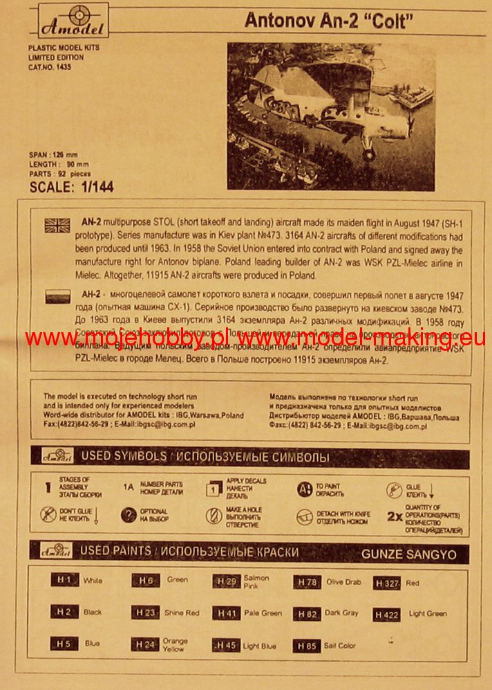 01435 SOVIET ANTONOV AN-2 COBRA BIPLANE TYPE 22 a&a models 1/144