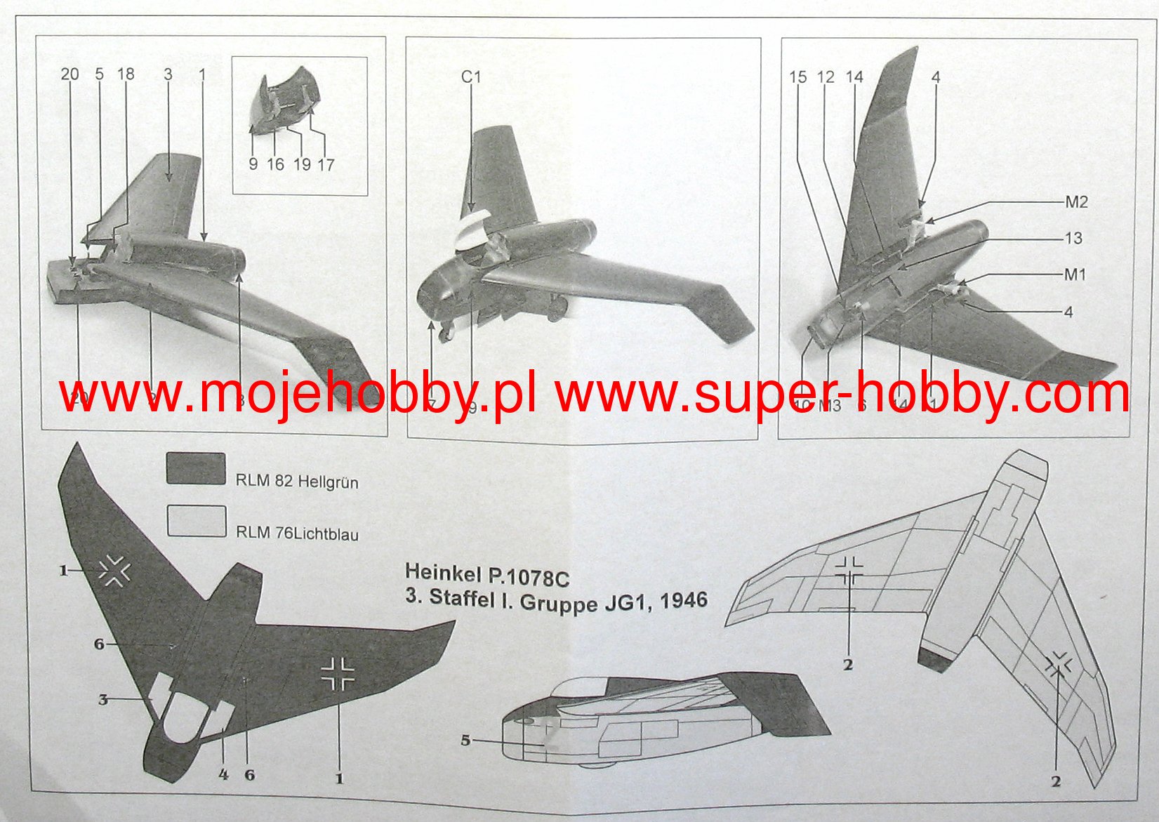 The Heinkel He-1078 is a never-realized jet fighter project that was developed in the period 1944-1945. There were three concepts for this remarkably atypical machine. The first, designated Heinkel He P.1078A, had a high-wing configuration, with a three-wheeled undercarriage and oblique wings in a flat M. The second version - Heinkel He P.1078B - had a tailless flying wing configuration with two fuselage elements, one of which housed the engine and the pilot's cabin. Finally, the third version, the Heinkel He P.1078C, assumed a tailless aircraft with a short fuselage and - again - wings in a flattened M configuration. It was planned to use the Heinkel Hirth On s 011 engine as the drive.