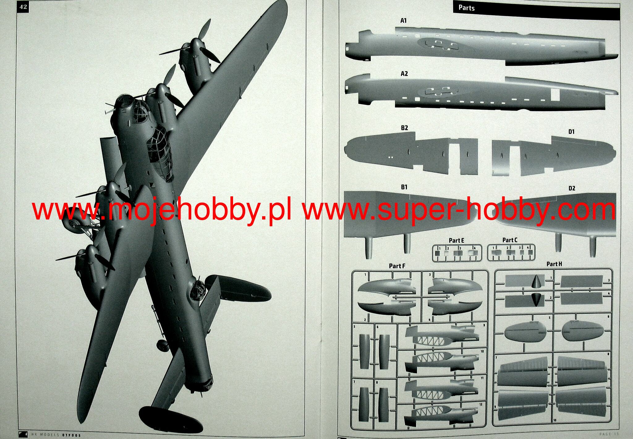 The Avro Lancaster is a British, four-engine, medium-wing metal structure strategic bomber from the Second World War. The prototype flight took place in January 1941 and mass production started in the same year. The basis for the creation of the Lancaster was the Avro Manchester plane. As a drive served min. four Rolls-Royce Merlin XX V-engines with a power of 1280 HP each (Mk.I) or Bristol Hercules VI engines with a power of 1737 HP each, although other engines were also used. Serial production took place at the Avro, Metropolitan-Vickers, Armstrong Whitworth, Vickers Armstrong and Victoria Aircraft plants and by the beginning of 1946, 7377 aircraft were produced. There were four main versions of the Avro Lancaster (Mk.I, Mk.II, Mk.III and Mk.X) that were externally similar to each other. The Avro Lancaster was the RAF's primary strategic bomber, and at the same time earned a reputation for being the best. It was easy to pilot, had high lifting capacity and was characterized by a long durability of the structure. It happened that the bomber was able to complete the mission and return to base, even despite the failure of one engine. The planes entered service in December 1941 and served at the end of the war, primarily performing strategic bombing tasks. It was the Lancasters of the RAF 617 Bomber Squadron that were used in May 1943 to damage the Ruhr water dams. Technical data (Mk.I version): length: 21.11m, wingspan: 31.09m, height: 6.25m, maximum speed: 456km / h, maximum range: 4073km, maximum ceiling 6500m, armament: fixed - 8 rifles 7.7mm Browning machine guns, mounted - up to 6300 kg of bombs or one Grand Slam bomb (10000 kg) after modifying the bomb chamber.