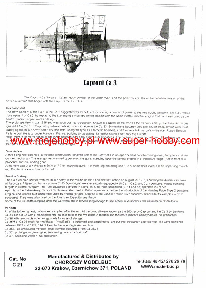 CAPRONI CA.3 TORPEDOES VERSION choroszy modelbud 1/72