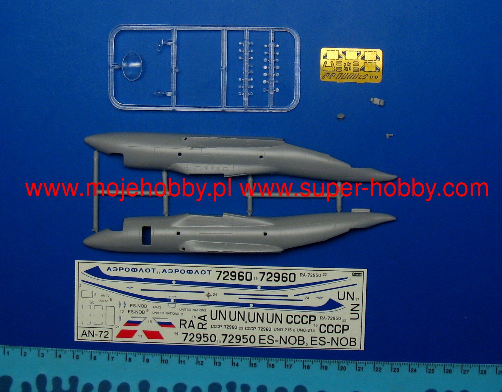 The Antonov AN-72 is a twin-engine, high-wing, short take-off and landing transport aircraft. The prototype flight took place in 1977. Serial production lasted from 1980 to 1993 and led to the creation of 200 aircraft of this type. In the AN-72, the exhaust gas streams from the highly built-up engines were directed after the titanium covering of the wings onto the slotted flaps, which resulted in an increase in the lift force. Serial copies in relation to the prototype have increased dimensions and range. The development version of the An-72 is the An-74 aircraft. The AN-72P is a machine designed for patrolling sea areas. The An-72 has a metal structure, with engines mounted in front of the wings, a three-support landing gear retracted in flight, a loading ramp at the back of the cabin. Rear hull lifted, cargo hold 9 m long, 2.10 m wide, 2.20 m high, internal crane with a capacity of 2400 kg. The plane takes 39 people and a load of 5,000 kg in the communication version, in the transport version - a load of up to 10,000 kg, in the sanitary version - 24 wounded on a stretcher. It is equipped with D-36 jet engines with a thrust of 6406 daN (6530 kG) each. Technical data: Top speed: 700 km / h; maximum range: 4,325 km, take-off weight: 34,500 kg, the plane is unarmed.