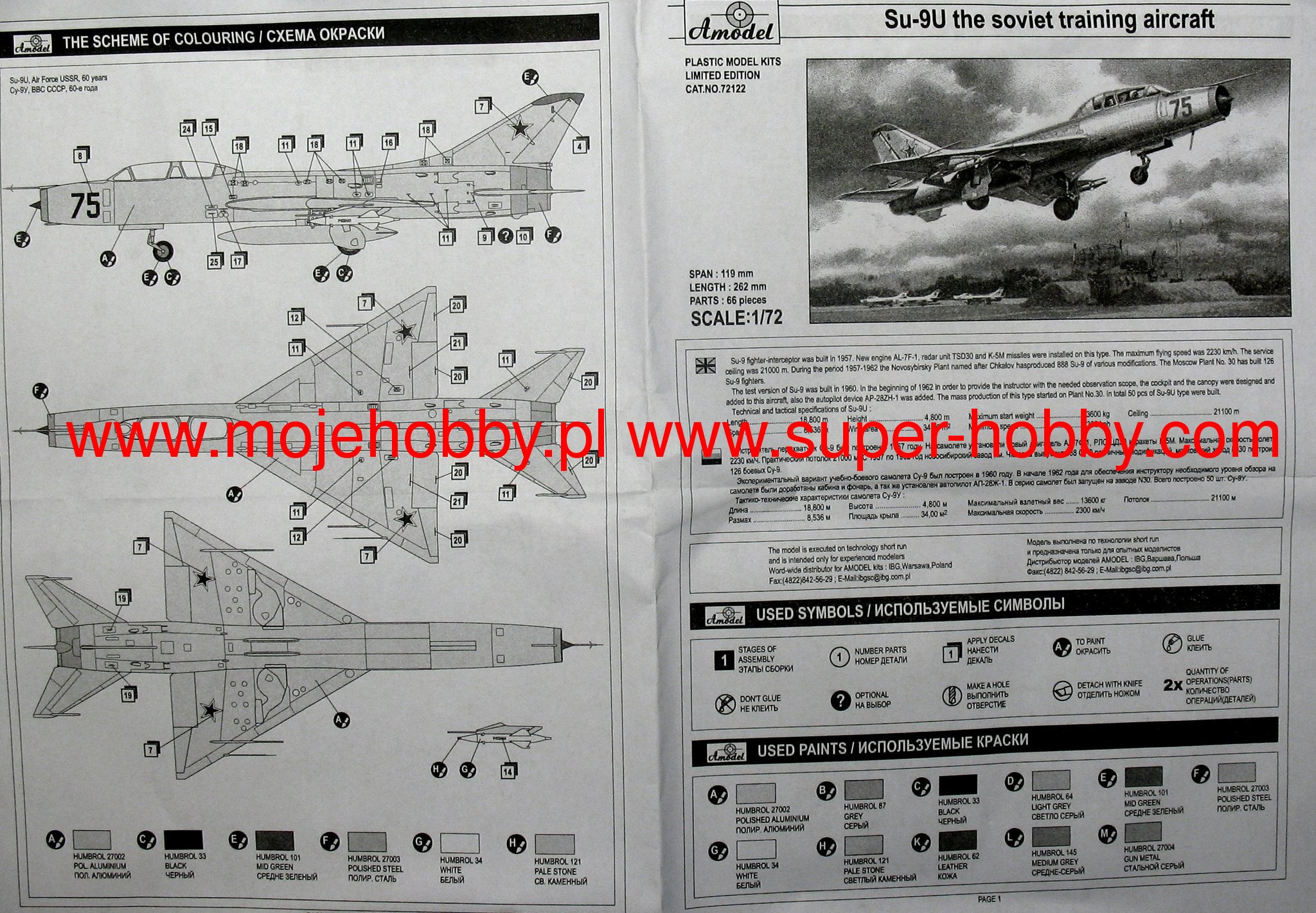 The Sukhoi Su-9 is a Soviet single-engine jet interceptor with a classic tail, metal structure and slanted wings in a medium wing configuration. The prototype flight took place in May 1956. The Su-9 was the basic Soviet interceptor of the early 1960s. It also perfectly reflected the concept of a "carrier plane", not intended for maneuvering, but for one surprise missile attack. In the second half of the 1960s, the Su-9 planes were adapted to carry the R-55 self-guiding missiles with infrared radiation, and the radar was modified for the RP-9UK variant. The Su-9 was also tested with bombs and, at the beginning of the 1970s, with the UPK-23-250 suspended container with a 23 mm cannon, the use of which, however, required the abandonment of suspended fuel tanks and was not popular. In 1960, the two-seater training and combat variant of the U-43 aircraft was developed. It had a 60 cm long fuselage to accommodate the instructor's seat behind the pilot's cabin. The prototype rebuilt from the Su-9 was flew on January 25, 1961. After state tests, the plane was adopted under the designation Su-9U and in 1961-1962 they were built at the Moscow plant of 50. This version carried two missiles and kept the radar station and others on it equipment. The Su-9 was replaced in the USSR aviation by the Su-11 and Tu-128. Technical data (Su-9 version): length: 18.06m, wingspan: 8.54m, height: 4.82m, maximum speed: 2230km / h, rate of climb: 200m / s, practical ceiling: 20,000m, maximum range: 1260 km, armament: fixed - none, outboard - from 2 to 4 AA-1 Alkali (RS-2US / K-5) or AA-3 Anab (K-55) missiles.