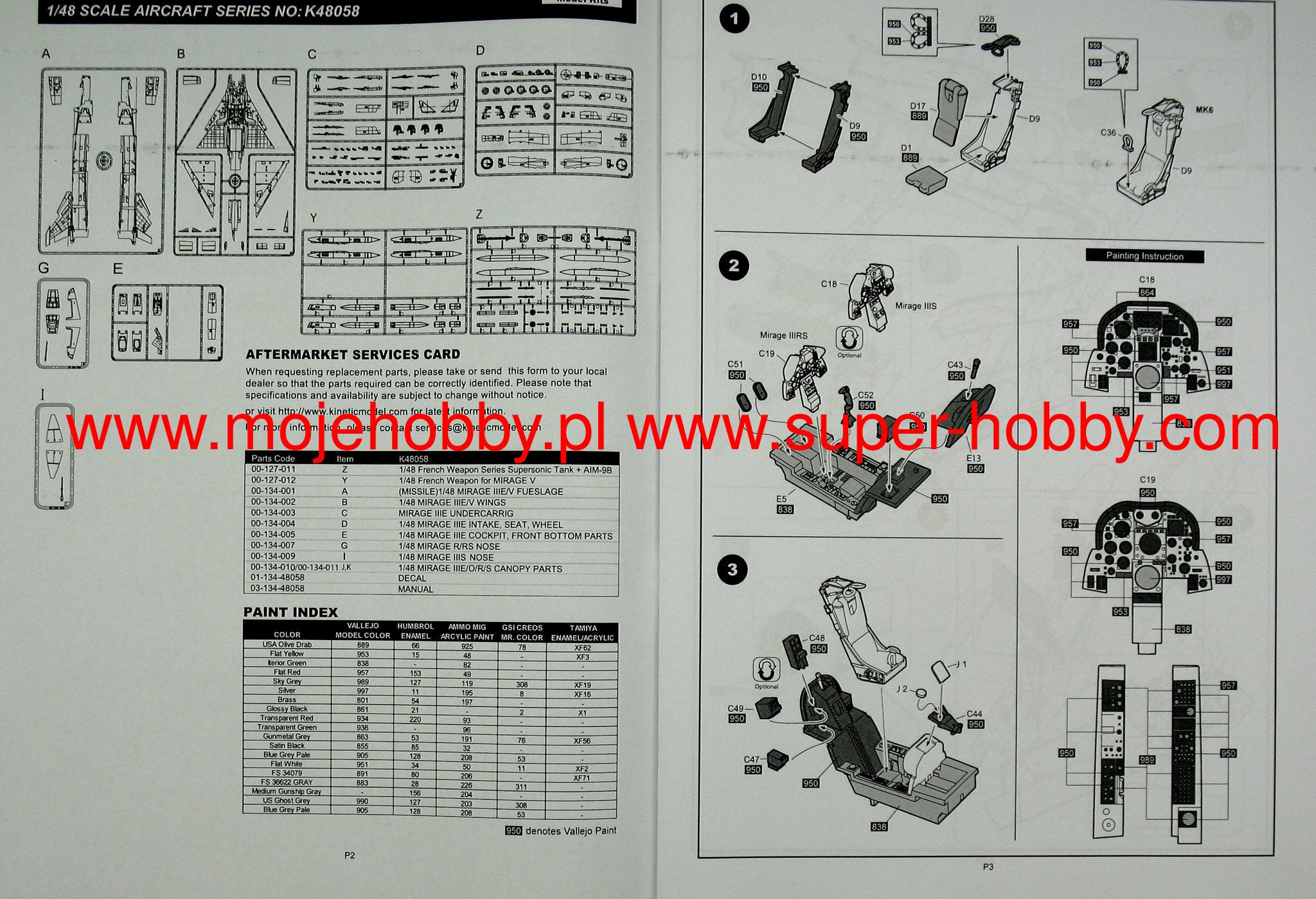 The Dassault Mirage III / 5/50 is a French single-engine fighter-attack aircraft with a delta-shaped lobe, without horizontal tail. In late 1955, Dassault began building a single prototype that retained the delta wing and an enlarged fuselage that could accommodate one SNECMA Atar 101G1 engine. The resulting Mirage III-001 was flown on November 17, 1956, to reach a flight speed of 1.52Ma after just two months. The use of manually controlled cones in fixed side inlets and the Atar 101G2 engine with thrust increased to 4490 kg, allowed to increase the speed to 1.65Ma, and then by using the SERP rocket accelerator - to 1.8Ma. To achieve the highest speed, Dassault modified the wing and after the first flight on May 12, 1958, Mirage IIIA reached the speed of 2.2Ma with an additional rocket engine. This led to the launch of production of the two-seater training version with tandem seats - the Mirage IIIB and the single-seat interceptor Mirage IIIC. The latter version had a built-in Cyrano AI radar, and two 30mm cannons could be supported by Matra R.530 or AIM-9 Sidewinder air-to-air missiles. The next important version was the long-range Mirage IIIE fighter-bomber, with the Atar 9C engine built into a slightly extended hull. This version was equipped with the Cyrano II radar, which, in combination with the Doppler radar and the TACAN navigation system, made it possible to conduct an attack at low altitude without the target's visibility in all weather conditions. Modification programs Mirage III (and derivatives V and 50) include the installation of modern navigation systems, weapons control and adaptation to modern types of weapons. The second area of modification is the installation of Atar 9K-50 engines with a thrust greater by about 20%, adaptation to centralized refueling under pressure and refueling during the flight, installation of zero-zero class catapult seats, improved visibility from the cabin, installation of front control surfaces increasing maneuverability in air combat, adaptation to carrying containers, e.g. for electronic warfare, laser target marking, recognition or infrared imaging of targets. Technical data (version IIIC): length: 14.77m, wingspan: 8.22m, height: 4.25m, maximum speed: 2.2Ma, climb speed: 83m / s, maximum range (with additional tanks): 4000km, maximum ceiling 17000m, equipment: fixed - two 30mm DEFA 552 cannons, suspended (Mirage 5) - up to 4200 kg of cargo.