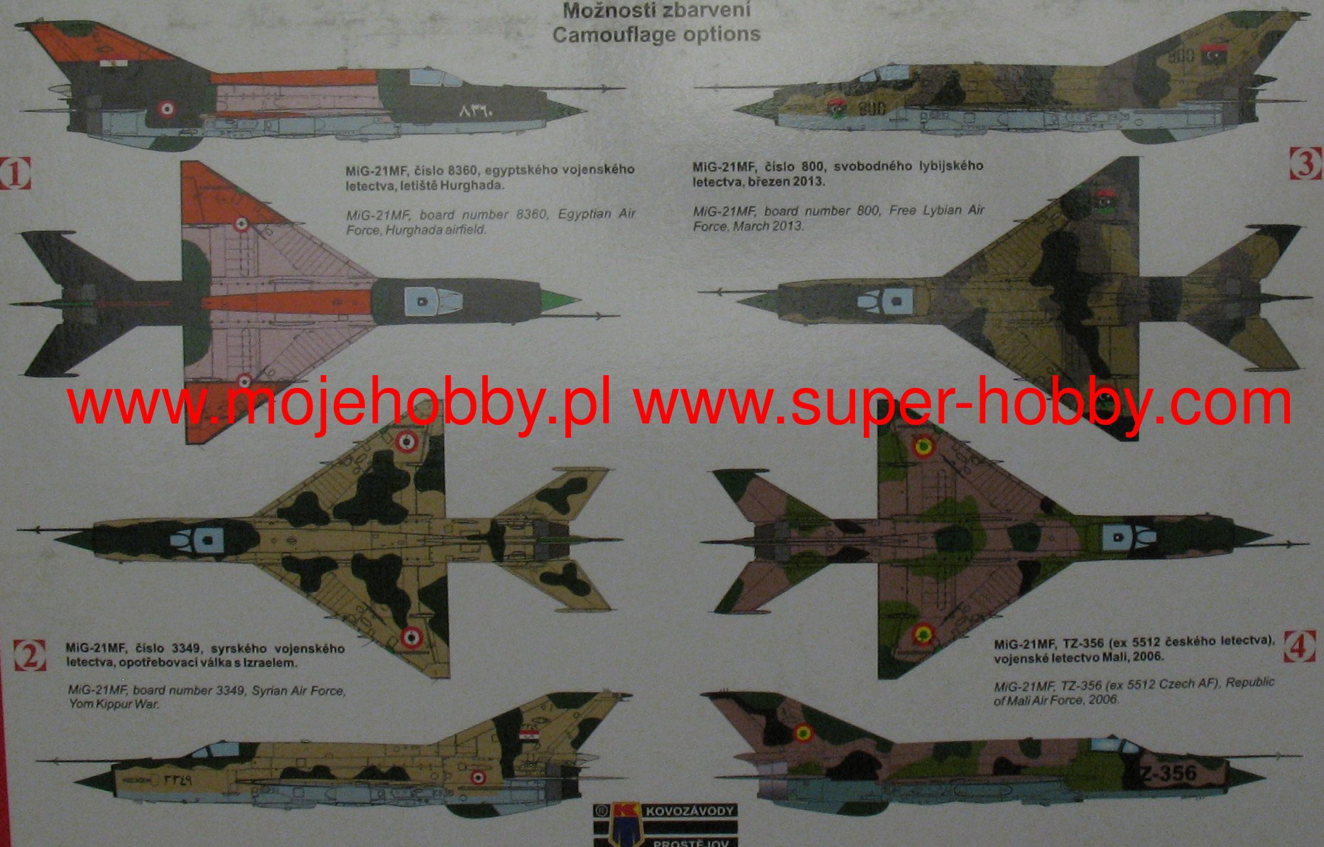 Микоян-Гуревич МИГ-21 (НАТО: Fishbed) советский лёгкий истребитель дюралюминиевой полукорпусной конструкции, в среднеплановой схеме, с треугольной лопастью с наклоном 57 градусов. Полет прототипа состоялся 16 июня 1956 года. Прототипом МИГ-21 считается прототип Е-5 с двигателем РД-11. После его полета было создано еще несколько прототипов, которые, кстати, били различные международные рекорды скорости полета. Полученный от них опыт был использован для усовершенствования Е-5, и, наконец, в 1959 году самолет был отправлен в серийное производство как МИГ-21Ф-13. В производстве находится более десятка базовых модификаций, а вместе с различными диверсиями количество типов МИГ 21 можно исчислить несколькими десятками! Важнейший из них первый серийный МиГ-21Ф. Он заменил версию МИГ-21ПФ с РЛС РП-21 и двигателем Р-11Ф2. Следующим вариантом развития является МиГ-21Р, т.е. самолет-разведчик. Также было создано несколько учебных модификаций, первая из которых МиГ-21У-400. МиГ-21 оказался очень удачной конструкцией, с отличными характеристиками, простым в пилотировании и дешевым в производстве. О качестве конструкции свидетельствует тот факт, что в 90-х годах были опытные версии этого самолета, которому было более 30 лет. Машина экспортировалась во все страны бывшего Варшавского договора и во все множество арабских и африканских стран. МиГ-21 принимал участие в большинстве вооруженных конфликтов 1960-1980 годов, в том числе во Вьетнамской войне, в Шестидневной войне (1967 г.), в ирано-иракской войне (1980-1988 гг.). Технические данные: длина: 13,46м, размах крыла: 7,15м, высота: 4,1м, максимальная скорость: 2130км/ч, скорость набора высоты: 120м/с, максимальная дальность: 1100км, максимальный потолок 19000м, вооружение: стационарное - одноместный 23-мм ГШ- 23 пушка (версия М), подвесная до 2000 кг груза.