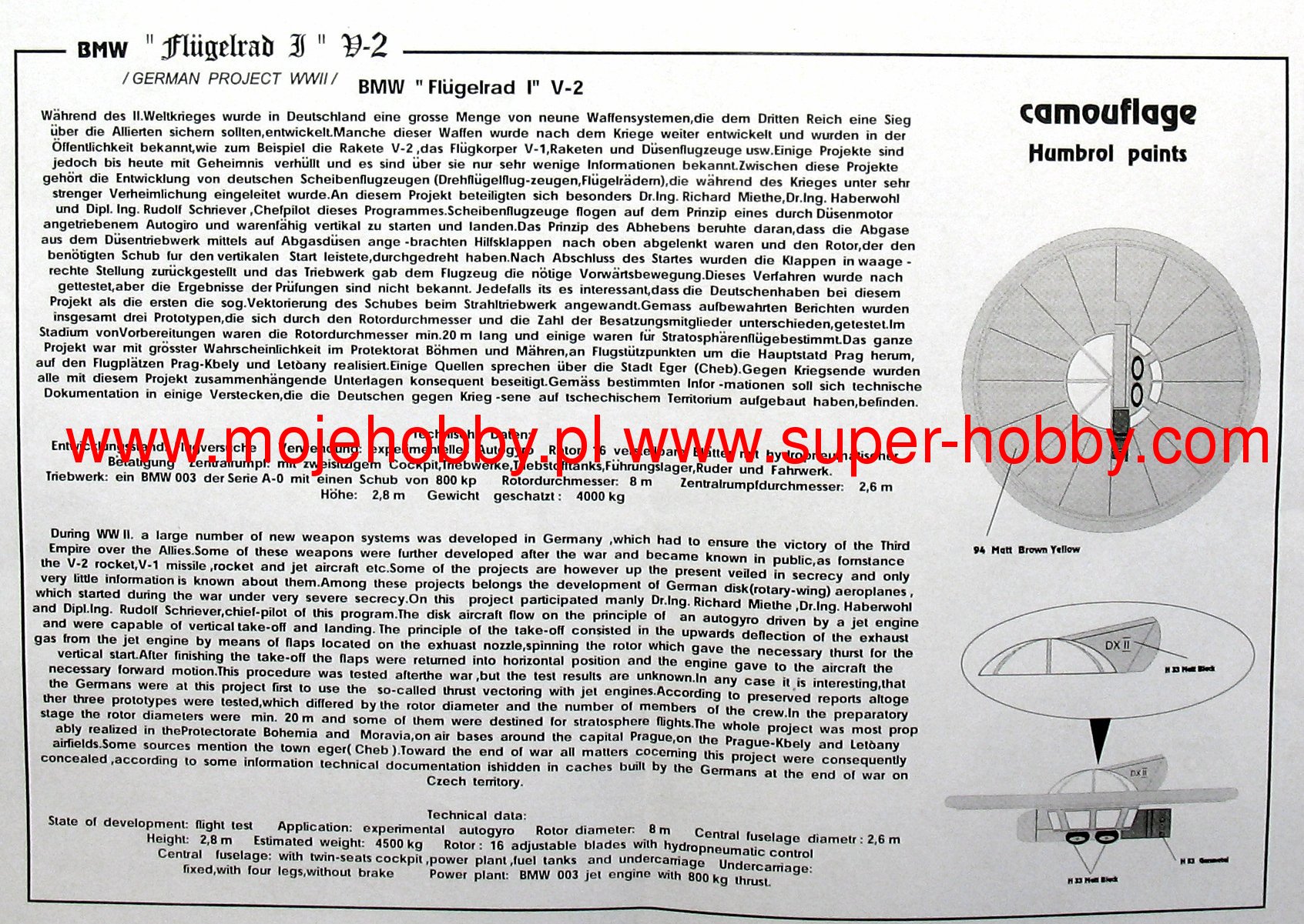 The Flügeradar is the conventional name of a German WWII jet or rocket project. The machine has probably never been tested, and certainly never entered production - even a small series. It can be assumed that the diameter of this aircraft was about 6 m, with a height of about 2.2 meters. The drive, on the other hand, could be provided by a single BMW 003 jet engine. However, it should be emphasized that these are only approximate and hypothetical data. The aircraft called Flügeradar is in fact an airplane with a jet propulsion probably in the shape of a flying disc, somewhat reminiscent of the aerodynamic assumptions of American experimental planes Vought V-173 Flying Pancake or the later Vought XF5U Flying Flapjack. Contrary to them, however, it would have a jet (or rocket) propulsion with an engine nacelle under the fuselage. What's more, Flügeradar was supposed to use the phenomenon of autorotation. According to the assumptions of the German designers, the new plane was to be characterized by unprecedented maneuverability and high top speed. However, all these are only hypotheses, and some information about the aircraft known as the Flügeradar is rather uncertain.