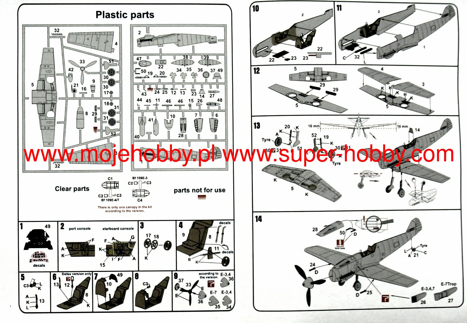 The Messerschmitt Bf-109 is a German metal-structure single-engine fighter in a low wing configuration with a classic tail. It turned out to be the basic and most produced Luftwaffe fighter during World War II. The flight of the prototype took place on May 29, 1935, and serial production continued in the years 1936-1945. In total, it is estimated that a total of about 35,000 Messerschmitt Bf-109 fighters of all varieties were produced, many of which ended up in the Czech and Israeli air forces after the war. The roots of the Bf-109 go back to the competition announced in 1933 by the Luftwaffe for a new fighter plane. In competition with the He-112, the Bf-109 project initially lost, but thanks to Willie Messerschmitt's intrigues, the project could continue and eventually he was the winner of the competition, becoming the Luftwaffe's primary fighter. Several main variants of the Bf-109 were developed in the course of production. The first pre-production series was the Bf-109B (Berta) with different versions of the Junkers Jumo 210 (A or Da) engine. They were tested in Spain from 1937 during the Civil War. The next version is the Bf-109C (Caesar). They had a different engine than the B version, and extensive armament consisting of two 20mm and 2 HP 7.92mm cannons. These machines also fought in the skies of Spain. The third version is the Bf-109D (Dora) with the Junkers Jumo 210 Da or Daimler-Benz DB 600 engine. It fought in the September campaign, but at the turn of 1939/1940 it was replaced by the E version. The most famous model was the Bf-109E (Emil) with a Daimler-Benz 601A or N engine. It was the first to use a three-blade, not a two-blade propeller. Bf-109E fought in the French campaign, over England, and in North Africa and on the Eastern Front. The ace who started his career on the Bf-109E was the famous Adolf Galland. The next version is the Bf-109F (Friedrich), which, according to the German pilots, was the most aerodynamically perfect. It sowed the changed shape of the fuselage, wings, cabin fairings, but no new engine was used. It was put into service at the turn of 1940/1941. As part of the development of the design, further Bf-109 specifications were developed, of which the G (Gustav) version was produced in the largest number of copies. The most important change increasing the machine's performance was the installation of a new 12-cylinder Daimler-Benz DB605A engine with 1475HP. The armament of the Bf-109G was a pair of 13mm machine guns located in the fuselage in front of the cockpit fairing, and the MG151 20mm or heavier MK108 30mm cannon. The last mass-produced version was the Bf-109K (Kurfirst), which production started in October 1944. A Daimler-Benz DB 605DB or DC unit was used as the engine. The Bf-109K was the fastest version produced during World War II, reaching up to 730 km / h. Apart from that, two versions were created - H and Z, but they were rather experimental versions and their mass production did not start. Subsequent improvements in propulsion and armament made the Messerschmitt Bf-109 one of the most dangerous fighters of World War II, and at the same time showed the great potential of the slightly angular airframe created by Willi Messerschmitt. Technical data (version Bf-109 G-6): length: 8.95 m, wingspan: 9.92 m, height: 2.6 m, maximum speed: 640 km / h, rate of climb: 17 m / s, maximum range: 850 km, maximum ceiling 12000m, armament: fixed - 2 MG131 13mm machine guns and 1 MG151 20mm cannon, suspended - 250 kg bombs, or 2 Wfr missile launchers. Gr. 21.