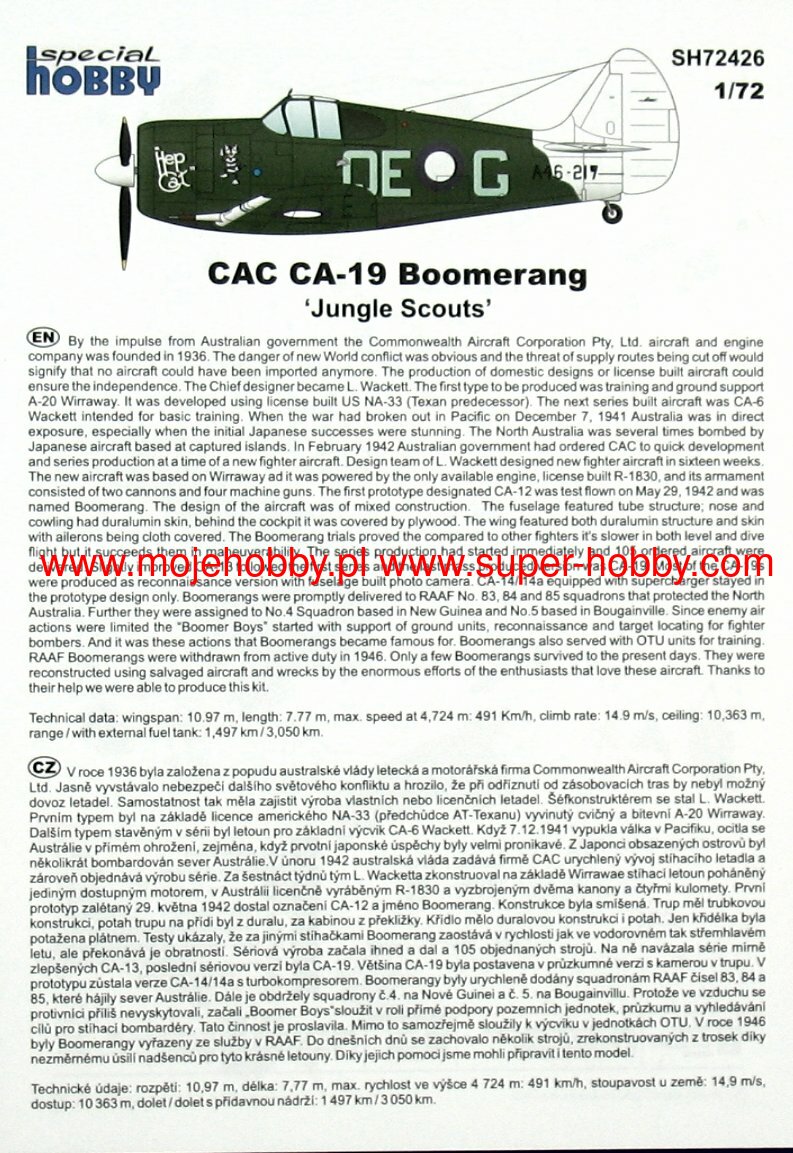 SPECIAL HOBBY САМОЛЕТ CAC CA-19 BOOMERANG ‘JUNGLE SCOUTS’