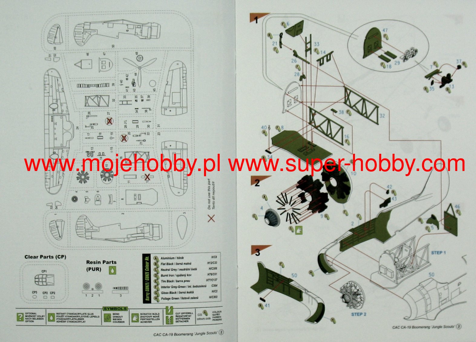 Сборная модель самолета CAC CA-19 Boomerang ‘Jungle Scouts’. Клей и краски в комплект набора не входят.