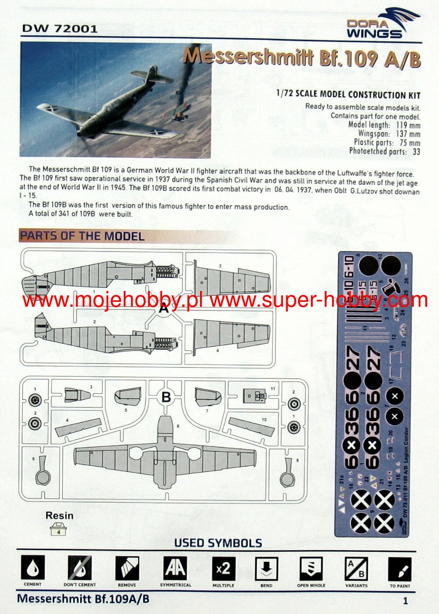 MESSERSHMITT BF.109 A/B LEGION CONDOR dora wings 1/72