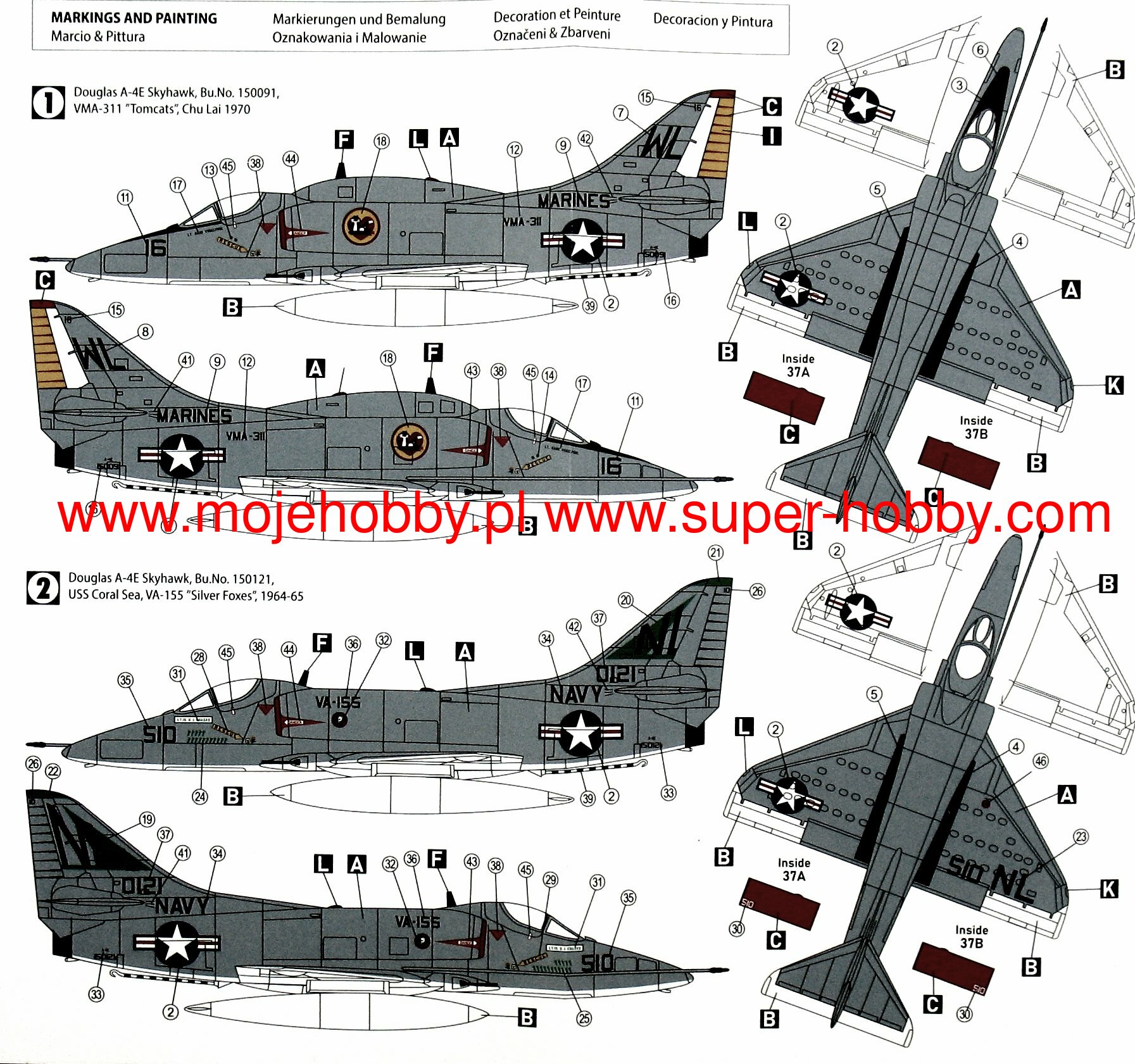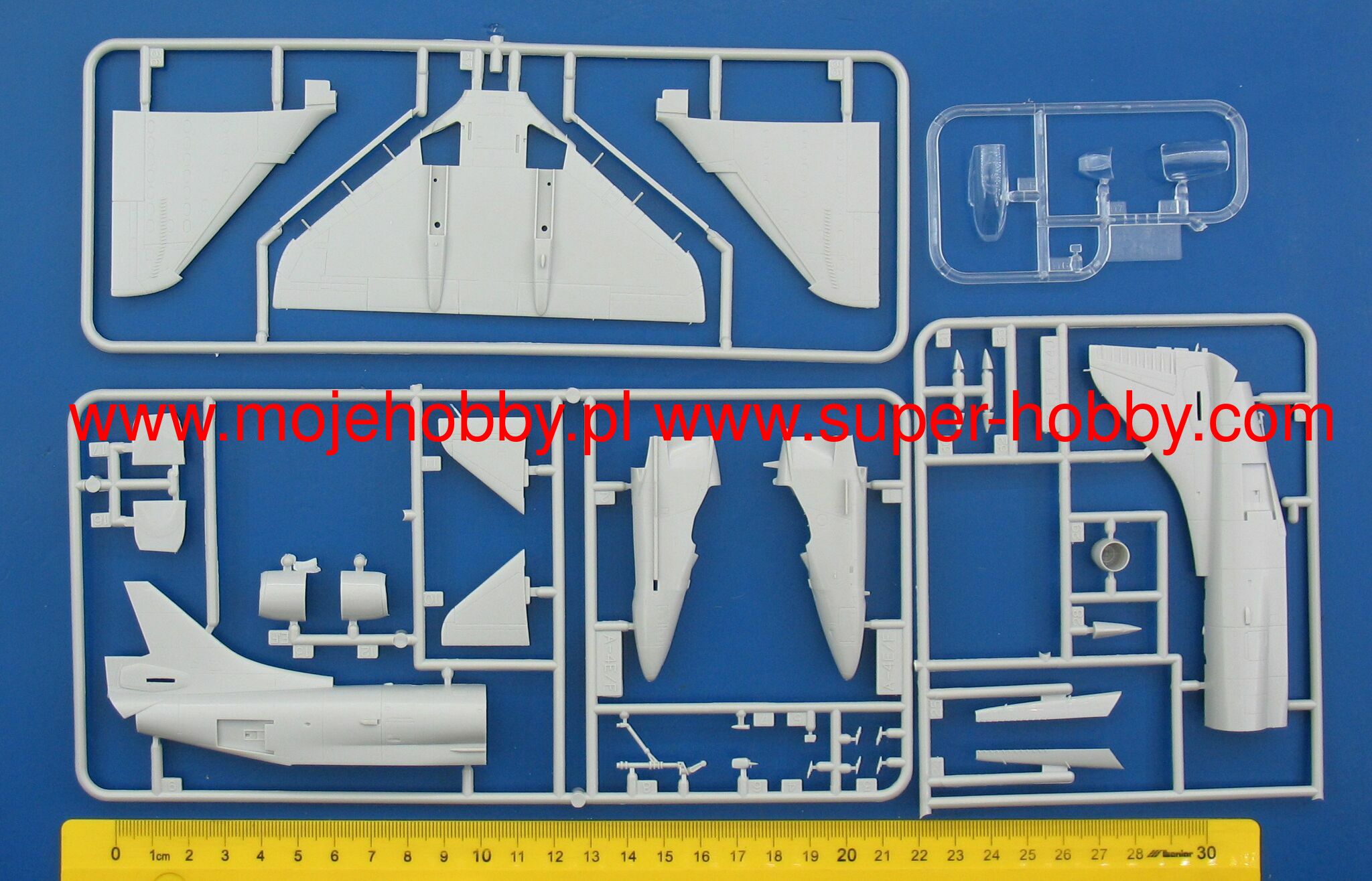 The McDonnell-Douglas A-4 Skyhawk is an American ground attack aircraft, the prototype of which was first flown in 1954. During the prototype trials in 1954, it broke the record for horizontal flight speed in its class of aircraft. The A-4 is a single-engine machine with a low-wing structure with a delta wing, which during use was characterized by high durability and resistance to damage, which won the recognition of pilots. Various versions of the A-4 Skyhawk aircraft took part in the Vietnam War, the Middle East conflicts (1967 and 1973) and the Falklands War (1982). They played a decisive role in the 1967 war, serving in the Israeli Air Force. The production ended in 1979, and so far approximately 2,900 combat versions and approximately 600 training versions have been produced. During the service, numerous versions were created, of which the A-4A (the first mass-produced version), A-4F (enhanced electronics), and A-4G (training version) should be replaced. Fixed armament: 2 Browning Mk 12 cannons (20 mm caliber); Suspended equipment (depending on the version) weighing from 3720 kg to 4155 kg. The plane exported, min. to Argentina, Australia, New Zealand and Singapore. Technical data: Top speed: 1075 km / h; climb speed 28-43m / s, practical ceiling 14900m, maximum range: 3305km.