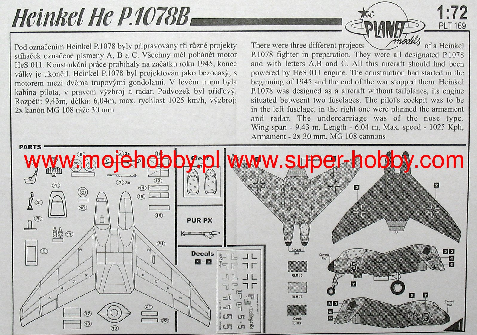 The Heinkel He-1078 is a never-realized jet fighter project that was developed in the period 1944-1945. There were three concepts for this remarkably atypical machine. The first, designated Heinkel He P.1078A, had a high-wing configuration, with a three-wheeled undercarriage and oblique wings in a flat M. The second version - Heinkel He P.1078B - had a tailless flying wing configuration with two fuselage elements, one of which housed the engine and the pilot's cabin. Finally, the third version, the Heinkel He P.1078C, assumed a tailless aircraft with a short fuselage and - again - wings in a flattened M configuration. It was planned to use the Heinkel Hirth On s 011 engine as the drive.