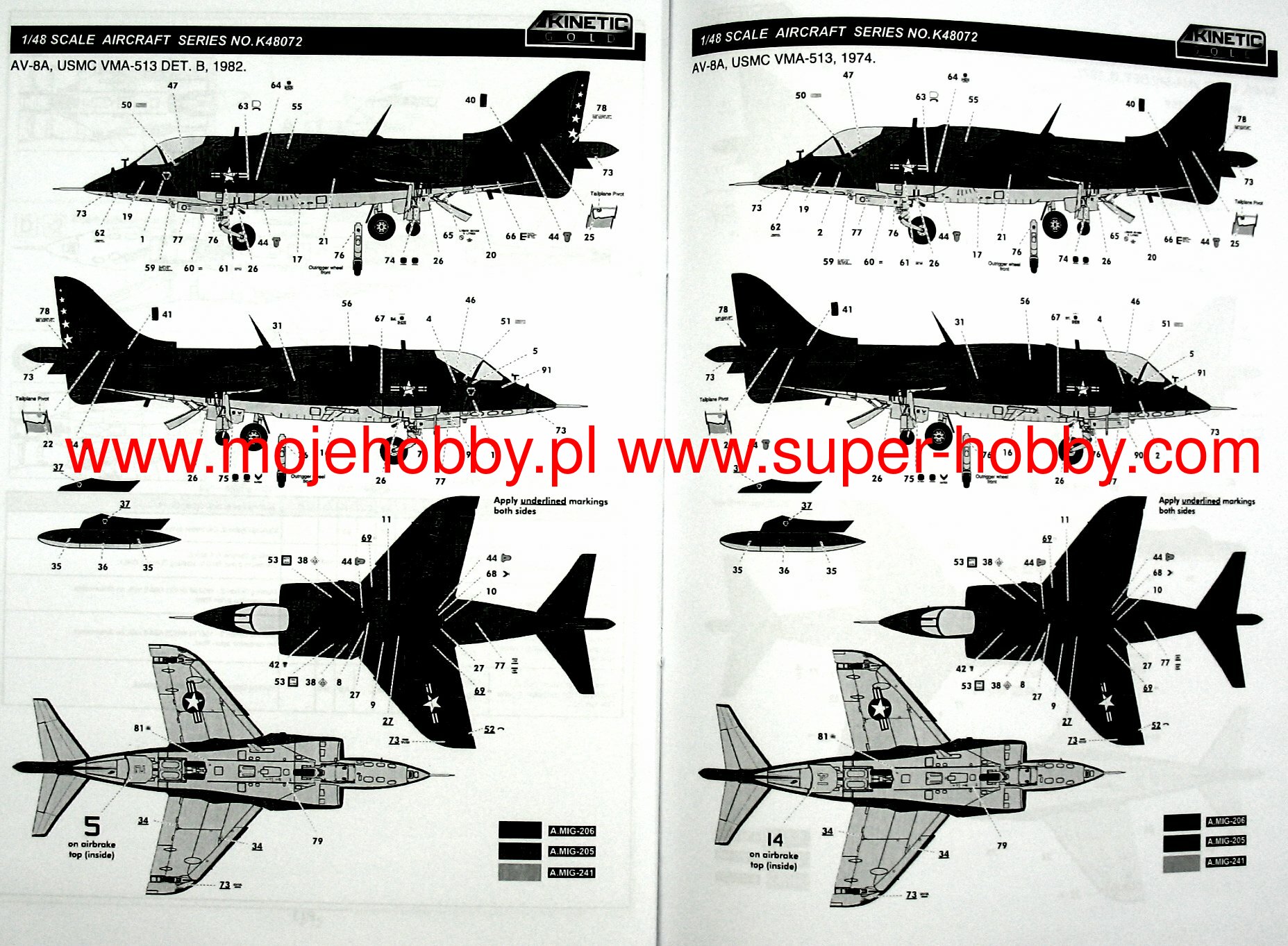 The McDonnell-Douglas / BAe AV-8B Harrier II is a single-seat, V / STOL fighter-attack aircraft with a half-shell, duralumin structure. The roots of the Harrier II aircraft date back to 1973, when McDonnell-Douglas and BAe collaborated to create a new, significantly improved Harrier. The recipients were to be the American US Marine Corps as well as the British RAF and Royal Navy. However, due to the high cost of a new engine for Harrier (Pegasus 15) in 1975, the British government and thus BAe withdrew from cooperation. As a result, only the McDonnell-Douglas concern remained on the "battlefield". Taking into account the costs, the American label decided to make only a far-reaching modification of Harrier, using newer avionics, a different wing and large-scale composites. The first prototype, the YAV-8B, took off in 1978. In 1980, the British side decided to join the project again. The first built from scratch AV-8B flew in 1981 and entered the line in 1983. US Marine Corps units use the AV-8B, T AV-8B, AV-8B (NA) and AV-8B + versions. The first of them is the basic version of the aircraft, serving as a fighter-attacker. It has greater lifting capacity and range than the AV-8A, as well as is more maneuverable and has a more modern avionics and engine. The latter, on the other hand, was commissioned by Italy and Spain and is used on aircraft carriers of these countries. The RAF uses the versions GR.5, GR.5A, GR.7, GR.7A, GR.9, GR.9A, and T.10, T.11 and T.12. Airplanes marked as GR are fighter-attack versions, while T are two-seater training machines. AV8B / Harrier II took part in Operation Desert Storm (1991) and in the war with Iraq (2003) and Afghanistan (2006-2008). Technical data (version Harrier AV-8B): length: 14.12m, wingspan: 9.25m, height: 3.56m, maximum speed: 1085km / h, combat radius: 1205km, armament: GAU-12U fixed cannon caliber 25 mm, suspended - up to 3748 kg of cargo.