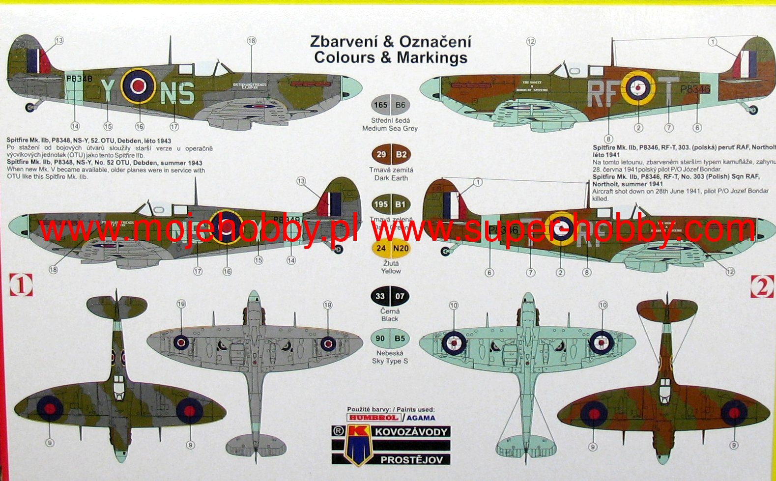 Supermarine Spitfire to chyba najsłynniejszy brytyjski myliwiec z okresu II wojny wiatowej. Była to maszyna o konstrukcji całkowicie metalowej, w układzie dolnopłata, z charakterystycznymi, eliptycznymi skrzydłami, z usterzeniem klasycznym i podwoziem chowanym w czasie lotu. Oblot prototypu nastšpił 5 marca 1936 roku. Spitfire okazał się podstawowš maszynš RAF podczas wojny, która radziła sobie z powodzeniem także po niej, pozostajšc w produkcji przez 10 lat. Historia Spitfire zaczęła się na biurku krelarskim R.J. Mitchella, głównego projektanta firmy Supermarine. Pierwsze maszyny trafiły do jednostek RAF w 1938 roku ale kiedy zaczynała się Bitwa o Anglię w lecie 1940, na lotniskach znajdowało się juz 19 dywizjonów nowoczesnych myliwców - razem z nieco starszymi Hurricane Wysp broniło 600 samolotów. Wraz z rozwojem działań wojennych Spitfire pełnił służbę wszędzie tam, gdzie działał RAF-na Dalekim Wschodzie, w Afryce Północnej i we Włoszech, w czasie lšdowania w Normandii i walk we Francji, wreszcie w toku operacji w Niemczech w 1945 roku. Dla wielu Brytyjczyków stał się symbolem zwycięstwa w II wojnie wiatowej. Ta wspaniała maszyna doczekała się co najmniej kilkunastu wersji produkcyjnych. Najważniejsze z nich to min. pierwszy produkowany na masowš skalę Spitfire Mk.I napędzany silnikiem Rolls-Royce Merlin II o mocy 1030 KM. To przede wszystkim ta maszyna tak wspaniale zapisała się w Bitwie o Anglię. Opracowano wiele podwersji tego modelu min. PR Mk IA (wersja rozpoznawcza) czy PR.IG (uzbrojona wersja rozpoznawcza). Kolejnš ciekawš wersjš był Spitfire Mk.V z silnikiem Rolls-Royce Merlin 45 o mocy 1440KM. Póniej montowano również silniki Merlin 50. Produkcja seryjna tej wersji ruszyła w 1941 roku i stanowiła odpowied RAF na pojawienie się Messerschmitta Bf-109F. Kolejna, bardzo udana zresztš, wersja to Spitfire Mk.IX, napędzany silnikiem Merlin 61 z 4-łopatowym migłem. Powstał on jako przeciwnik dla Focke-Wulfa Fw-190 i został wprowadzony do produkcji pod koniec 1941 roku. Wersja ta była wielokrotnie modyfikowana i np. w 1944 roku doczekała się nowego celownika żyroskopowego, powiększonego steru kierunku czy innego układu skrzydła. Inna ważna wersja to Spitfire Mk.XIV z silnikiem Rolls-Royce Griffon 61, ze migłem pięciołopatowym. Produkcja seryjna ruszyła od padziernika 1943 roku. Jednš z ostatnich produkowanych seryjnie była wersja Mk.21. Wersja ta posiadała silnik Griffon 61, zdecydowanie wzmocnionš konstrukcję oraz poszycie, wydłużono skrzydła, zwiększajšc ich powierzchnię lotnš. Produkcja seryjna ruszyła w marcu 1945 roku. Dane techniczne (wersja Mk.XIV) : długoć: 9,14m, rozpiętoć skrzydeł: 11,23m, wysokoć: 3,05m, prędkoć maksymalna: 717km/h, prędkoć wznoszenia: 18,5m/s, pułap praktyczny: 13200m, zasięg maksymalny: 1815km, uzbrojenie: stałe- 4 karabiny maszynowe kal.7,7mm oraz 2 działka Hispano Mk II kal.20mm, podwieszane-do 225 kg bomb. Co oprócz modelu będę potrzebować do jego sklejenia?