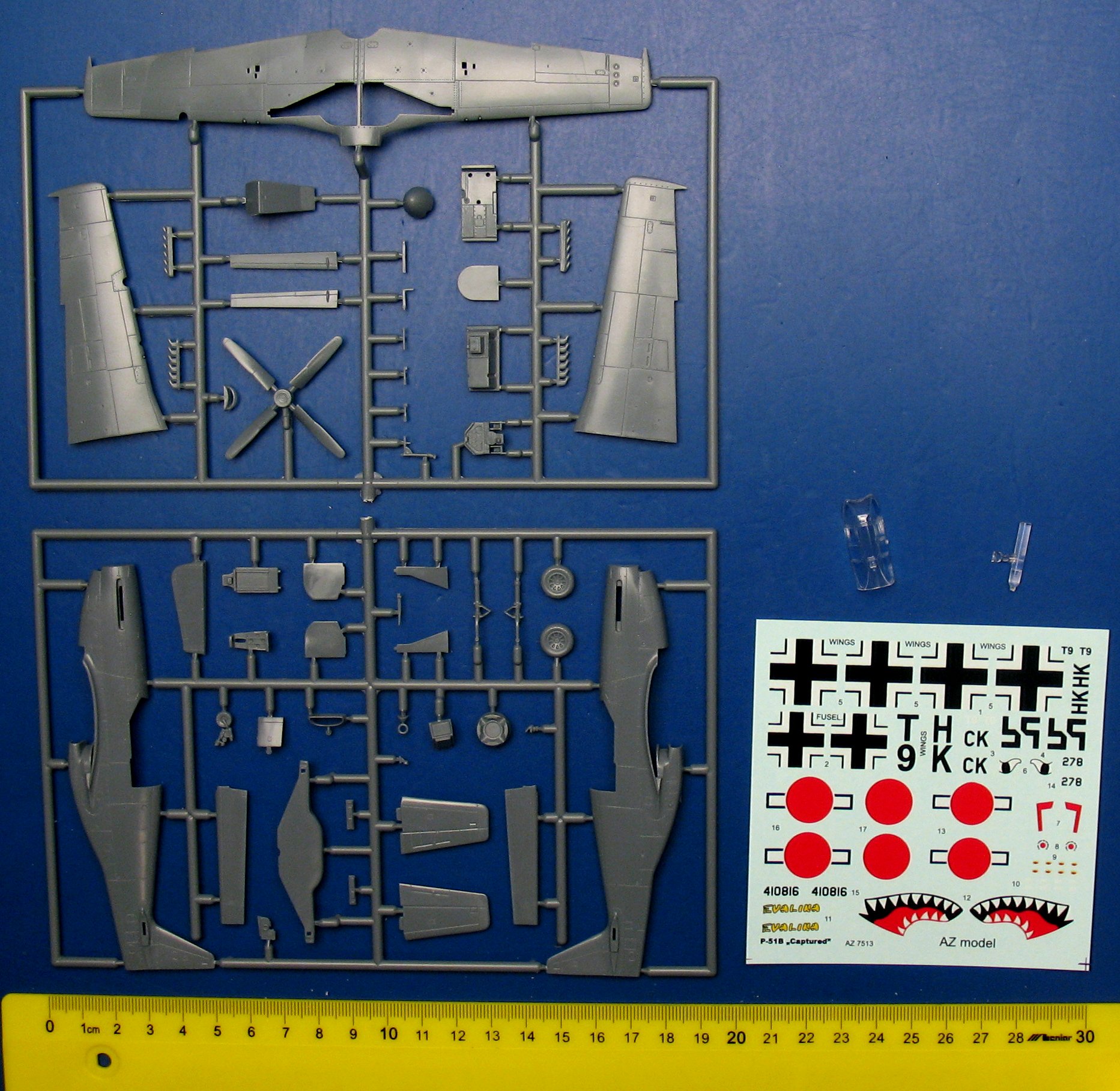 The North American P-51 Mustang is an American, single-engine, long-range fighter and attack aircraft with a classic tail and all-metal construction. The flight of the prototype took place on October 26, 1940. The P-51 Mustang has earned a reputation as one of the best, if not the best, WWII fighter. Replacing the Allison V-1710-39 engine from the first project with a Rolls-Royce Merlin motor (P-51 Mustang Mk.Ia version) made the Mustang, like never before, reached perfection. The single-seat fighter impressed with its maximum speed, range, maneuverability, and powerful weapons. The combination of all the most important parameters for the assessment of the aircraft made the Mustang prove itself in virtually every role entrusted to it: it gained air superiority, escorted, carried out reconnaissance missions, attacked ground targets. The class of design is evidenced by the fact that the Mustang remained in active service until the 70's! One of the most important versions was the P-51D, based on the P-51B. It received a drip cab fairing, ensuring excellent visibility, and a new engine - Packard V-1650-7, which significantly improved performance. Technical data (P-51D version): length: 9.83m, wingspan: 11.28m, height: 4.08m, maximum speed: 703km / h, rate of climb: 16.3m / s, maximum range: 2755km, ceiling practical: 12800m, armament: fixed - 6 12.7mm M2 machine guns, suspended - up to 908 kg of bombs or 10 127mm HVAR rocket launchers.