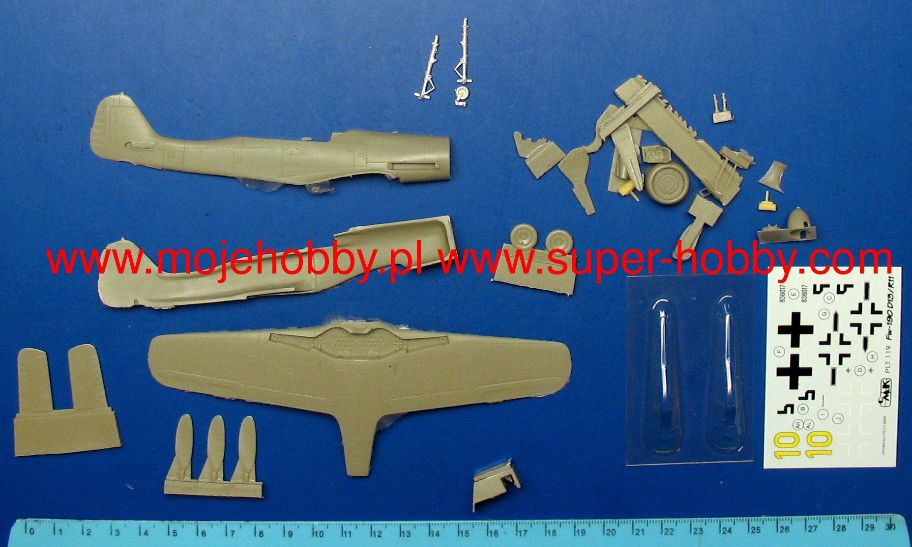 The Focke-Wulf Fw-190 is a German, single-engine, full-metal fighter aircraft with a covered cabin in the low wing design of the Second World War. The pilots considered the Fw-190 to be a better aircraft than the Messerschmitt Bf-109. A self-supporting low wing with a working Fw-190 coating was commissioned by the Luftfahrtministerium, assembled in the fall of 1937. Kurt Tank submitted two propulsion proposals - the first with a liquid-cooled Daimler-Benz DB 601 engine, and the second with the new BMW 139 radial engine. The latter was chosen, and the work started in the spring of 1938 was headed by Obering R. Blaser. The first prototype of the Fw-190V1 was ready in May 1939, and it was flown in Bremen on June 1, 1939 by Captain Hans Sander. The second prototype, the FW-190V2, armed with two MG131 and two MG17 machine guns - all 7.92 mm caliber, was flew in October 1939. To reduce aerodynamic drag, both were equipped with a tunnel air inlet in the propeller cap, but problems with overheating of the engine resulted in a return to the proven NACA shield design. Before the tests of these prototypes began for good, the decision was already made to replace the BMW 139 engine with a stronger, but longer and heavier BMW 801. It required many changes, strengthening the structure and moving the cabin back, which later became a source of problems with the center of gravity. The advantage was the removal of problems with exhaust gas permeation and overheating of the cabin interior due to its direct vicinity to the BMW 139 engine. The third and fourth prototypes were abandoned, and the Fw-190V5 with the new engine was completed at the beginning of 1940. Later, it received wings with a wingspan enlarged by one meter (from the original 9.5 m), which made it 10 km / h slower, but it increased the rate of climb and improved maneuverability. It was marked Fw-190V5g, and the variant with the shorter wing was Fw-190V5k. The first seven machines of the Fw-190A-0 information series had a short wing, the rest - a longer one. The first operational unit equipped with the Fw-190 - 6./JG 26 stationed at Le Bourget, declared its operational readiness in August 1941 and from the first meeting of the new fighter with the British Supermarine Spitfire, its advantage over them became apparent. During the war, a dozen or so versions of this great plane were created. The machines of the "A" version, along with a dozen or so modernizations, served as fighter planes. The versions marked "B" and "C" were only prototypes of high-altitude fighters intended for fighting strategic bombers, but they did not enter into serial production. The "D" variant, as the only one of the Fw-190s, was powered by the new 1750HP Jumo 213A engine and was the German response to the P-51 Mustang. The new engine extended the fuselage by several dozen centimeters. This variant also performed mainly hunting and high-altitude fighter tasks. Numerous variants of the "F" version were used as fighter-bombers as direct support of the battlefield. The "G" version played the same role as the "F" version, but had a greater range. During the entire war, over 20,000 copies of this one of the best fighters of World War II were produced. Technical data (version Fw-190A-8): length: 9m, wingspan: 10.51m, height: 3.95m, maximum speed: 656km / h, rate of climb: 15m / s, maximum range: 800km, maximum ceiling 11410m , armament: fixed-2 MG131 13mm machine guns and 4 MG151 20mm cannons (2 MG 151 / 20E cannons for the D-9 version).